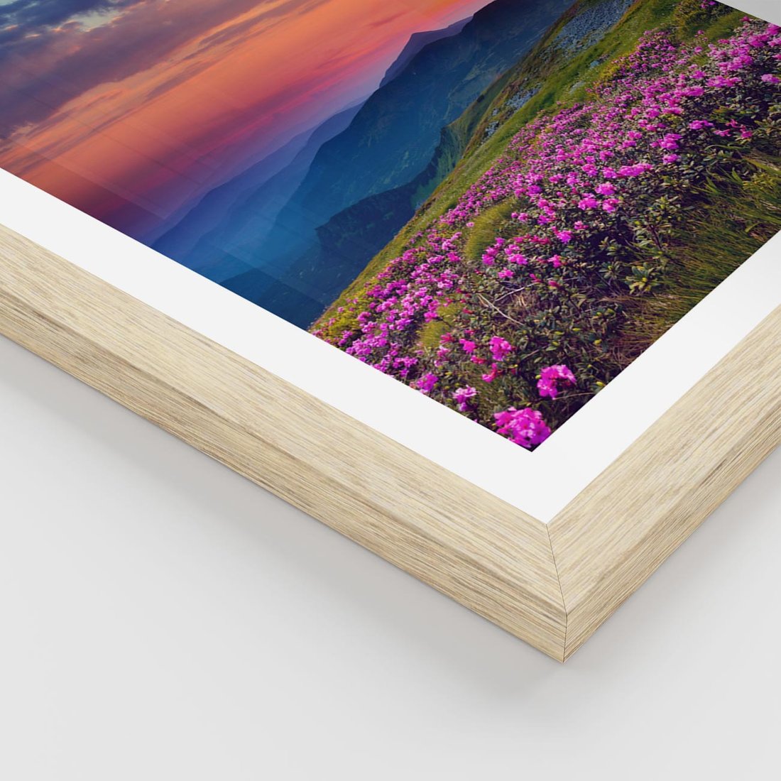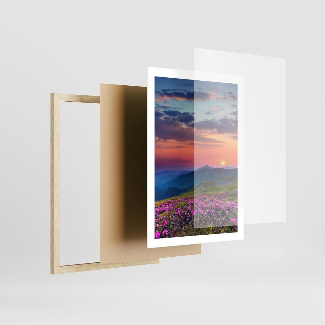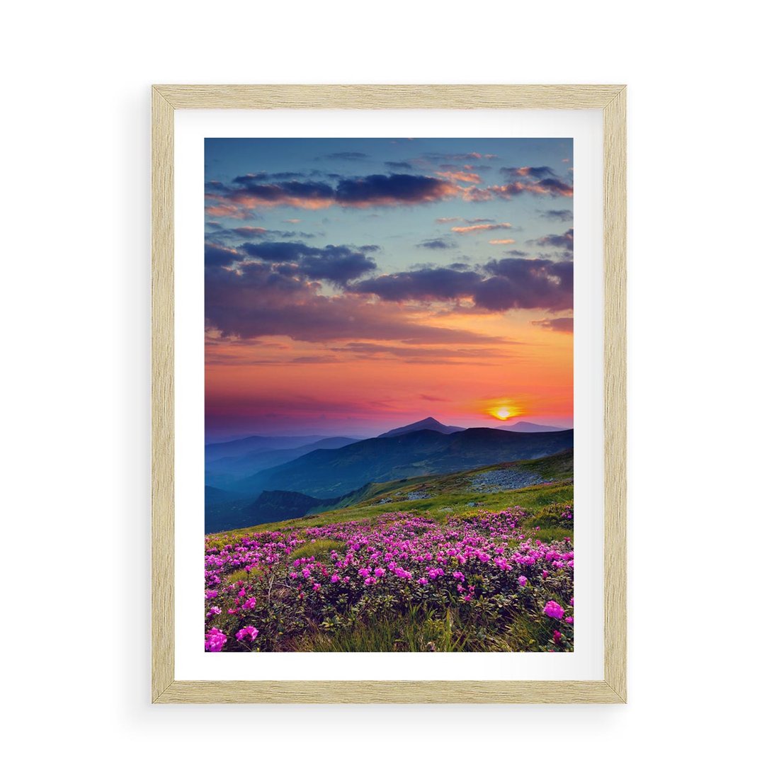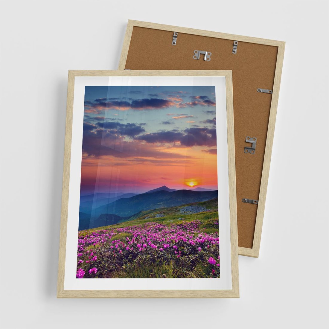 Plakat w ramie 50x70 - Górski Zachód - góry, łąka - rama drewno