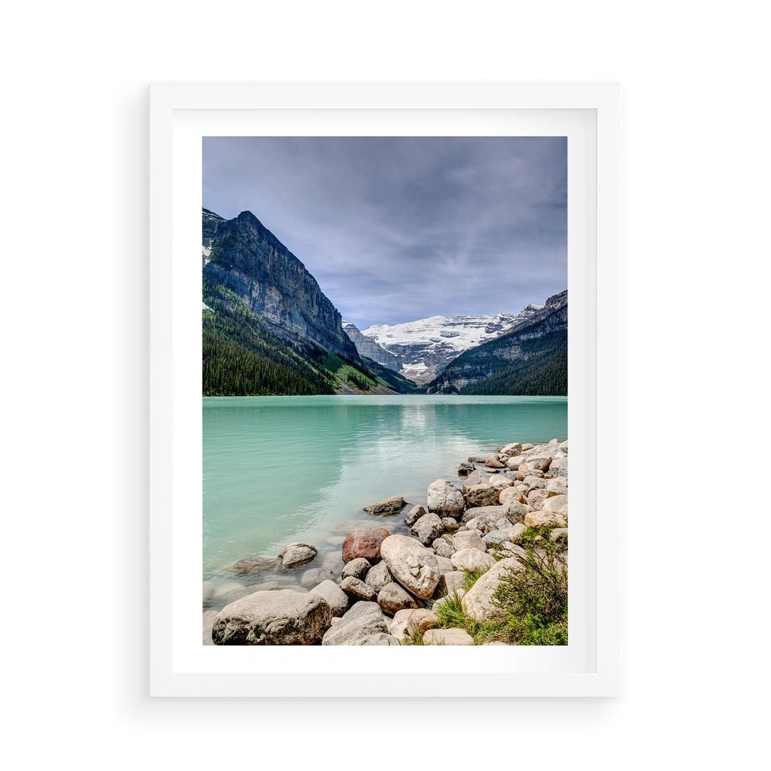 Plakat w ramie 50x70 - Górskie jezioro - spokój i piękno - jezioro, górskie - rama biała