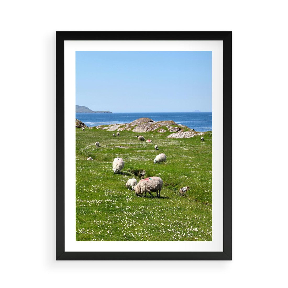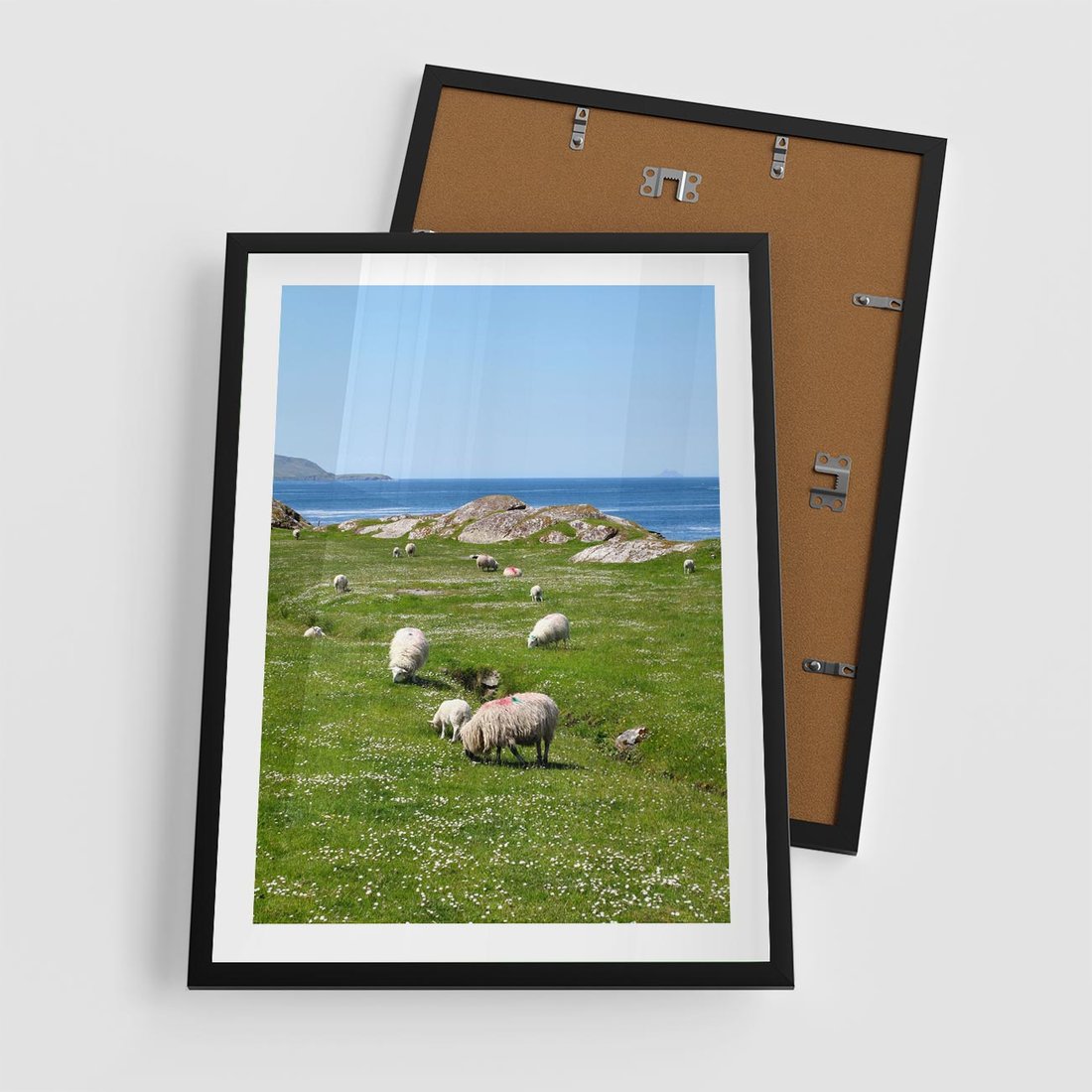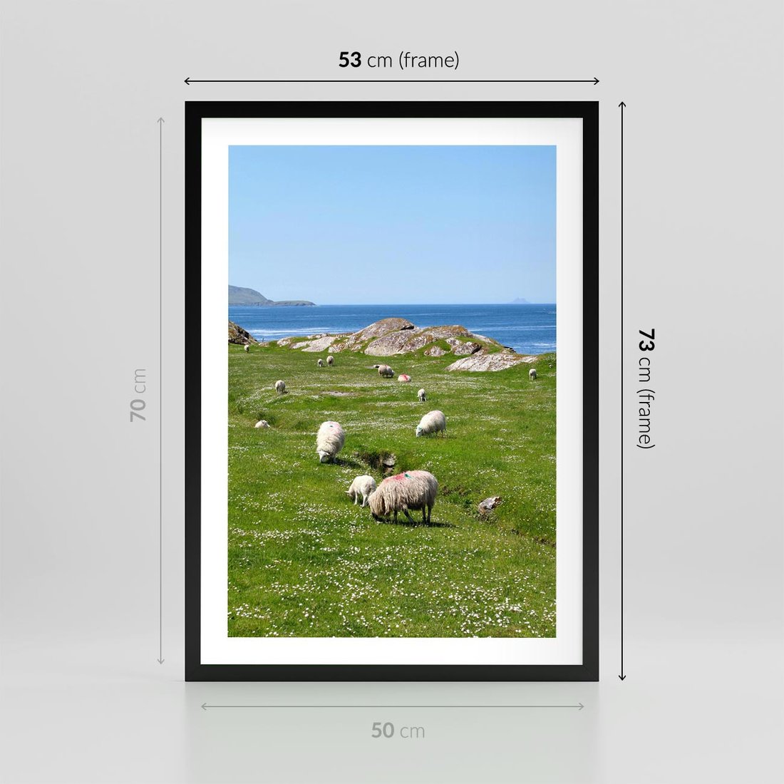 Plakat w ramie 50x70 - Górskie Owce - góry, owce - rama czarna