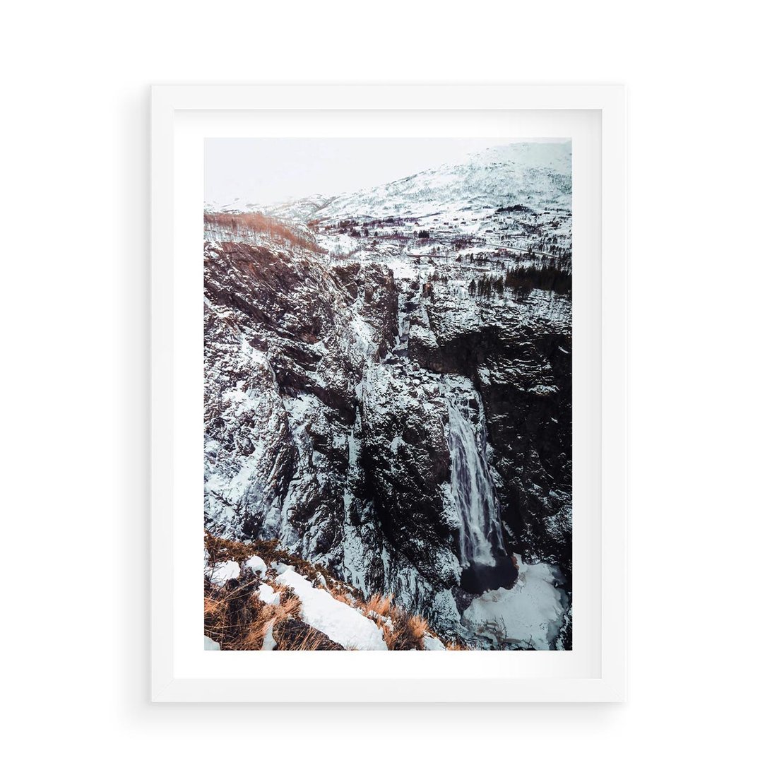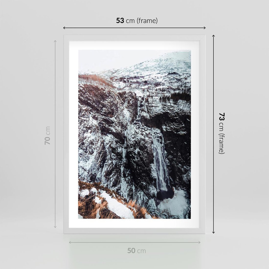 • Plakat w ramie 50x70 - Góry w Białym Uroku: Zimowa Sceneria