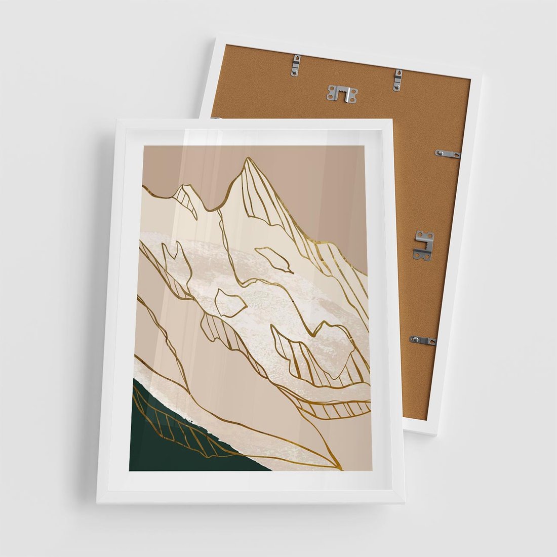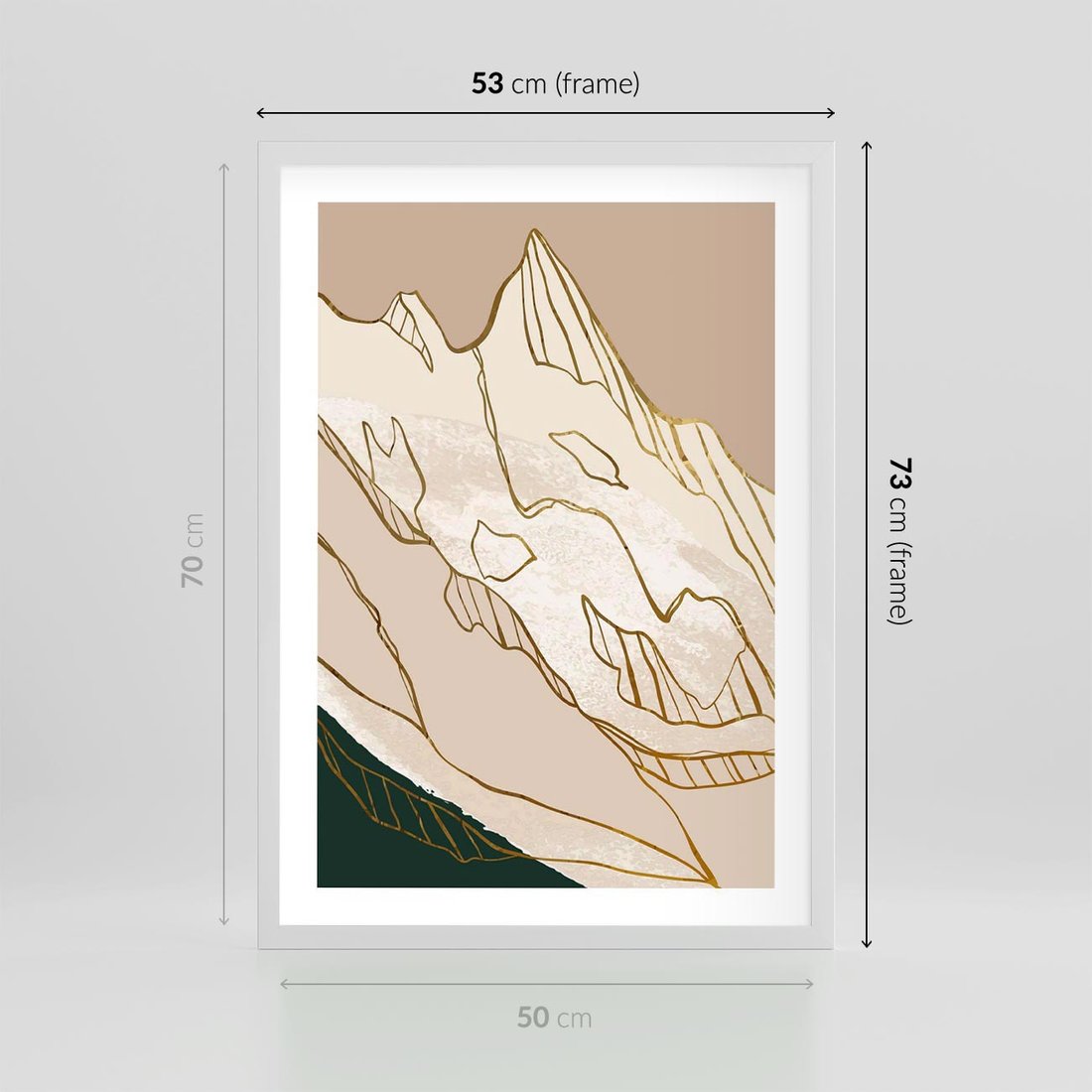 Plakat w ramie 50x70 - Góry w Złocie i Minimalizmie - grafika, złote góry - rama biała