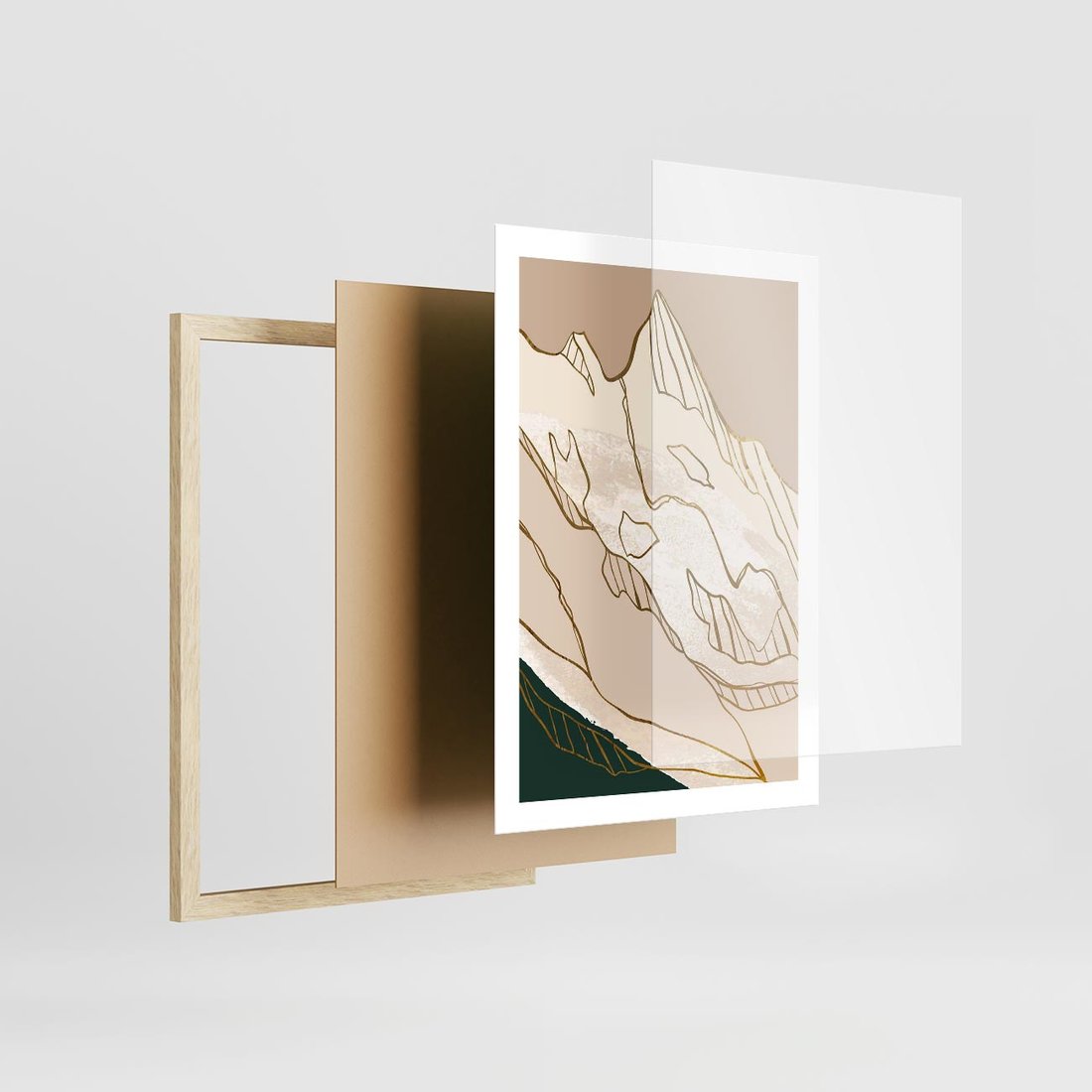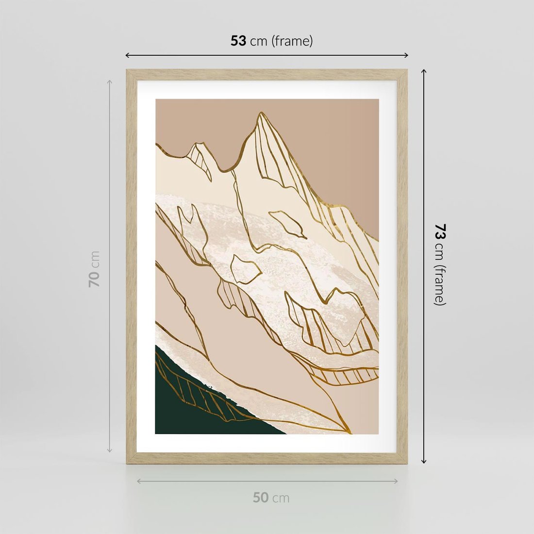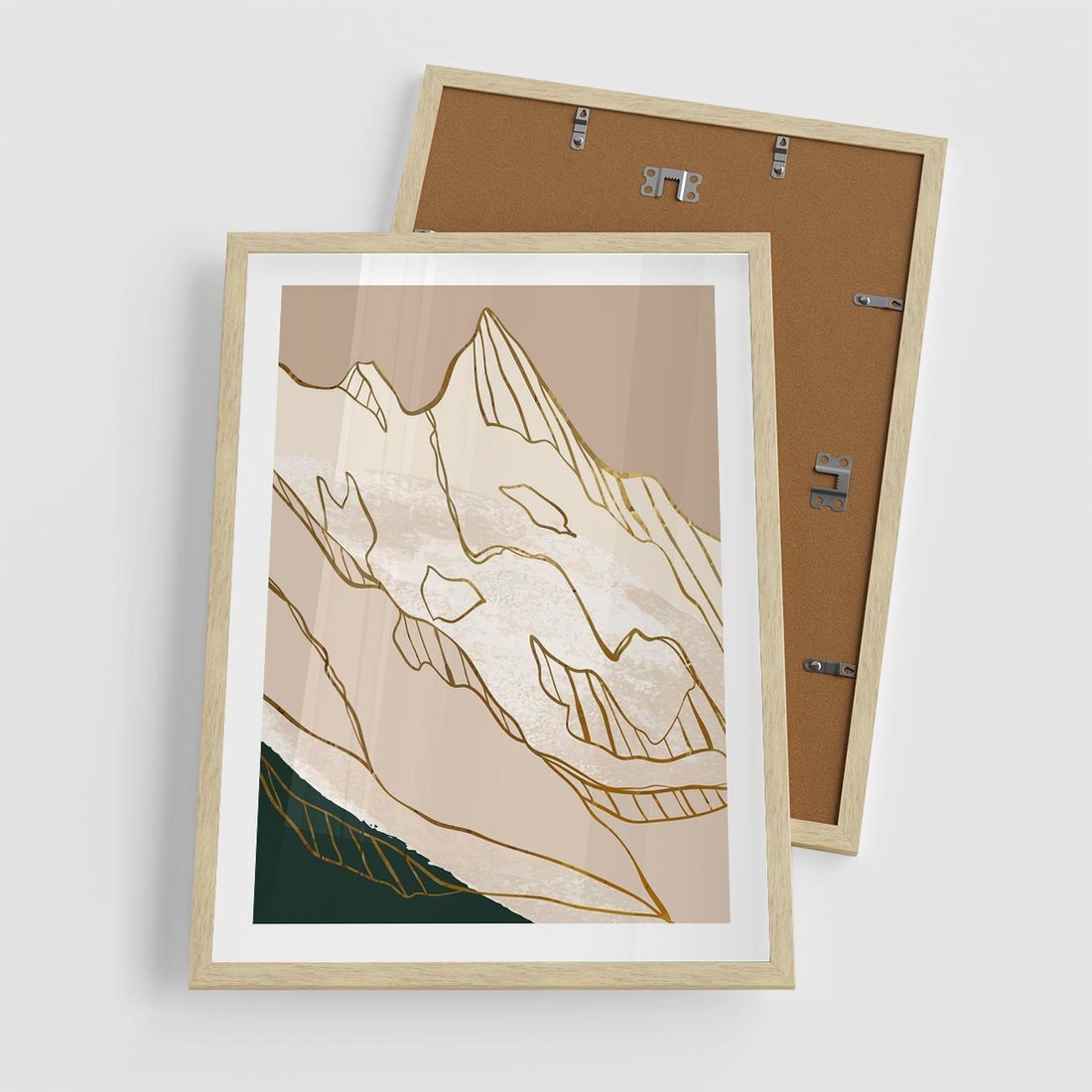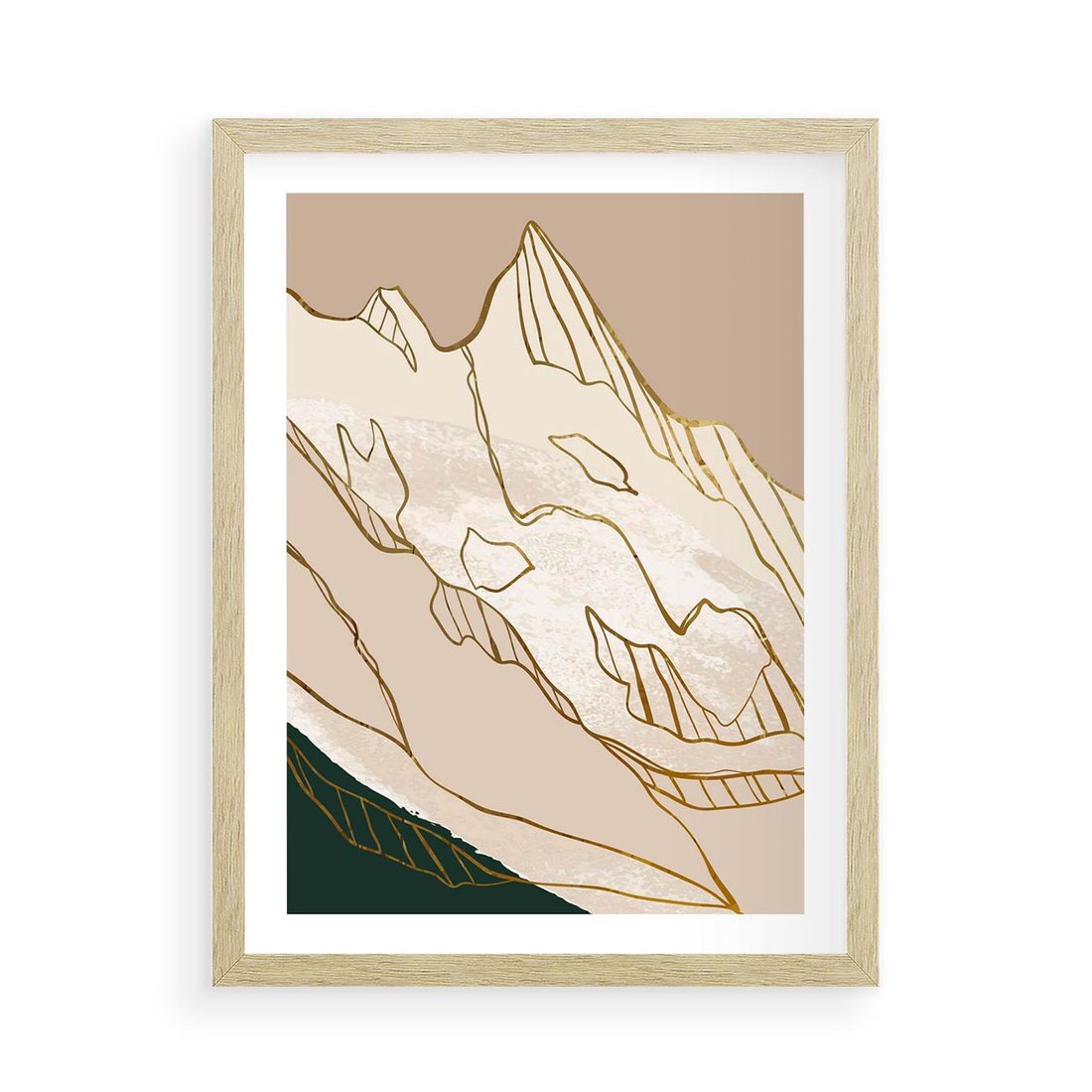 Plakat w ramie 50x70 - Góry w Złocie i Minimalizmie - grafika, złote góry - rama drewno