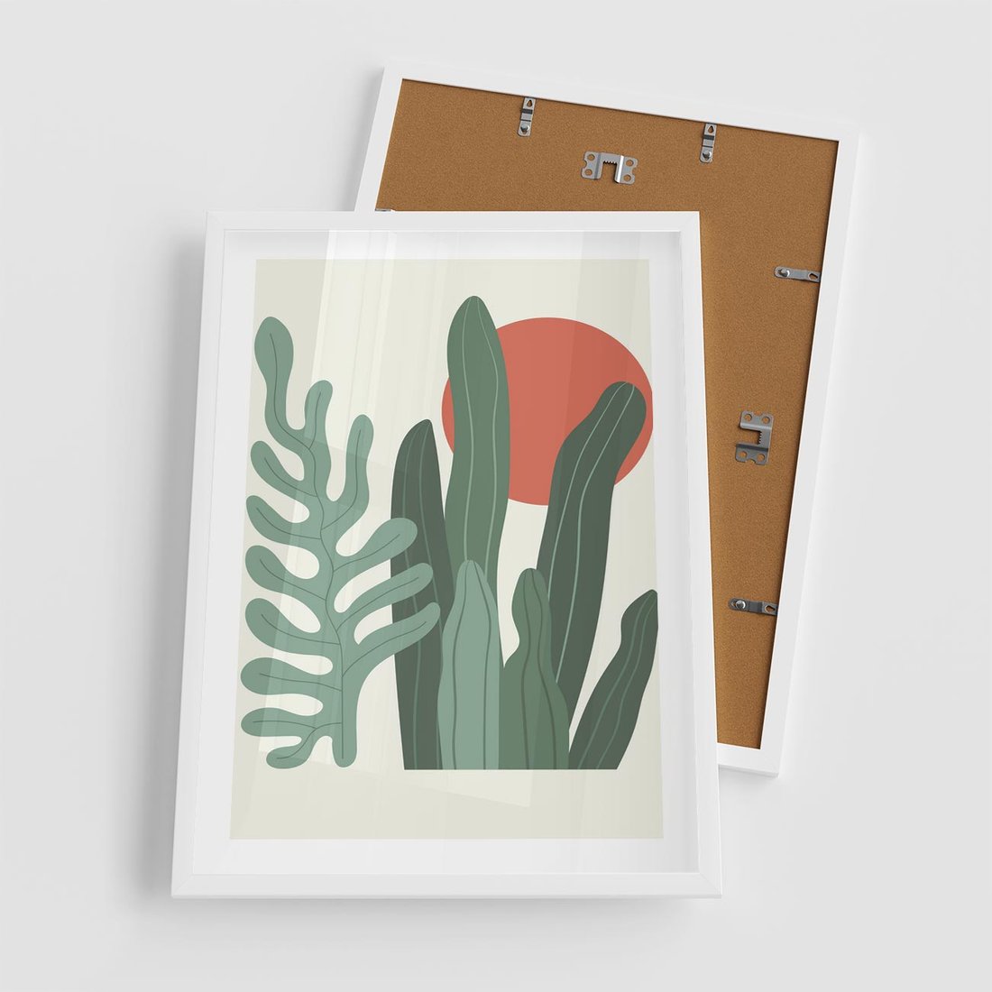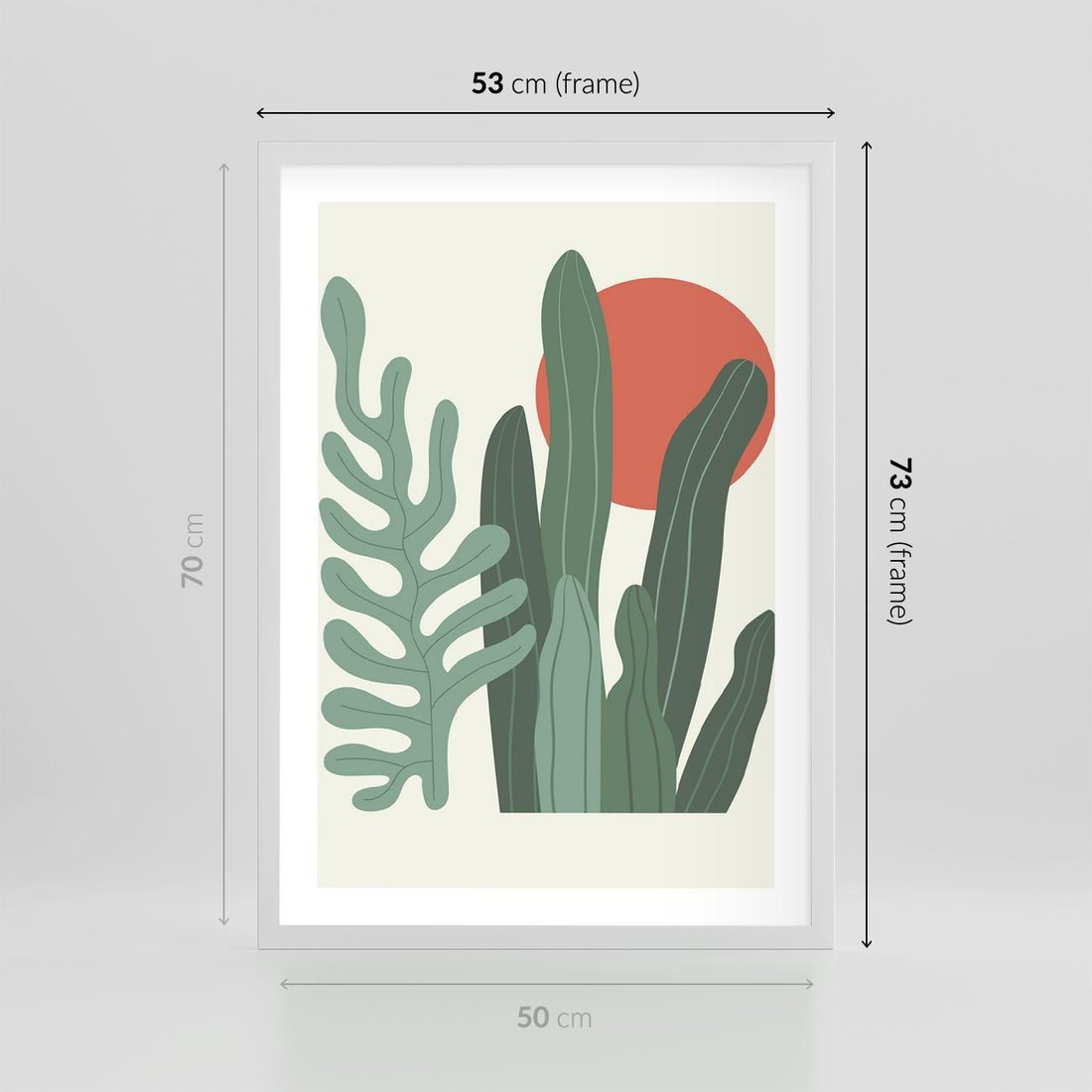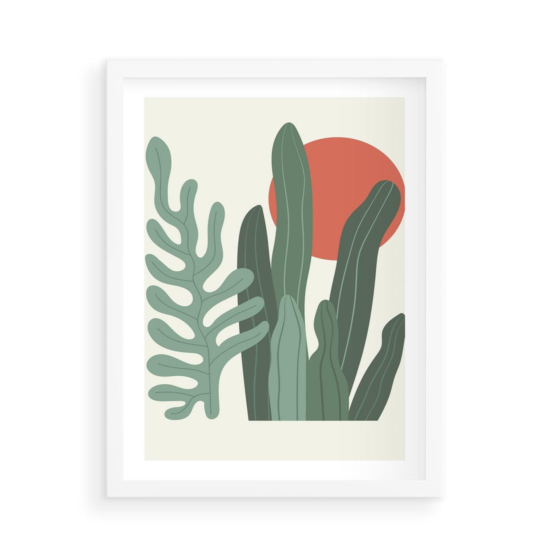 Plakat w ramie 50x70 - Graficzna Harmonia: Liście i Rośliny na Plakacie - liście, grafika - rama biała