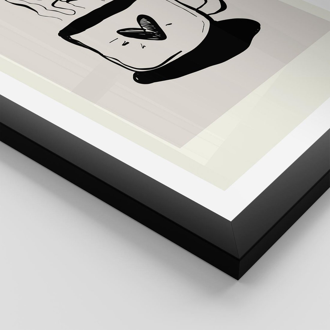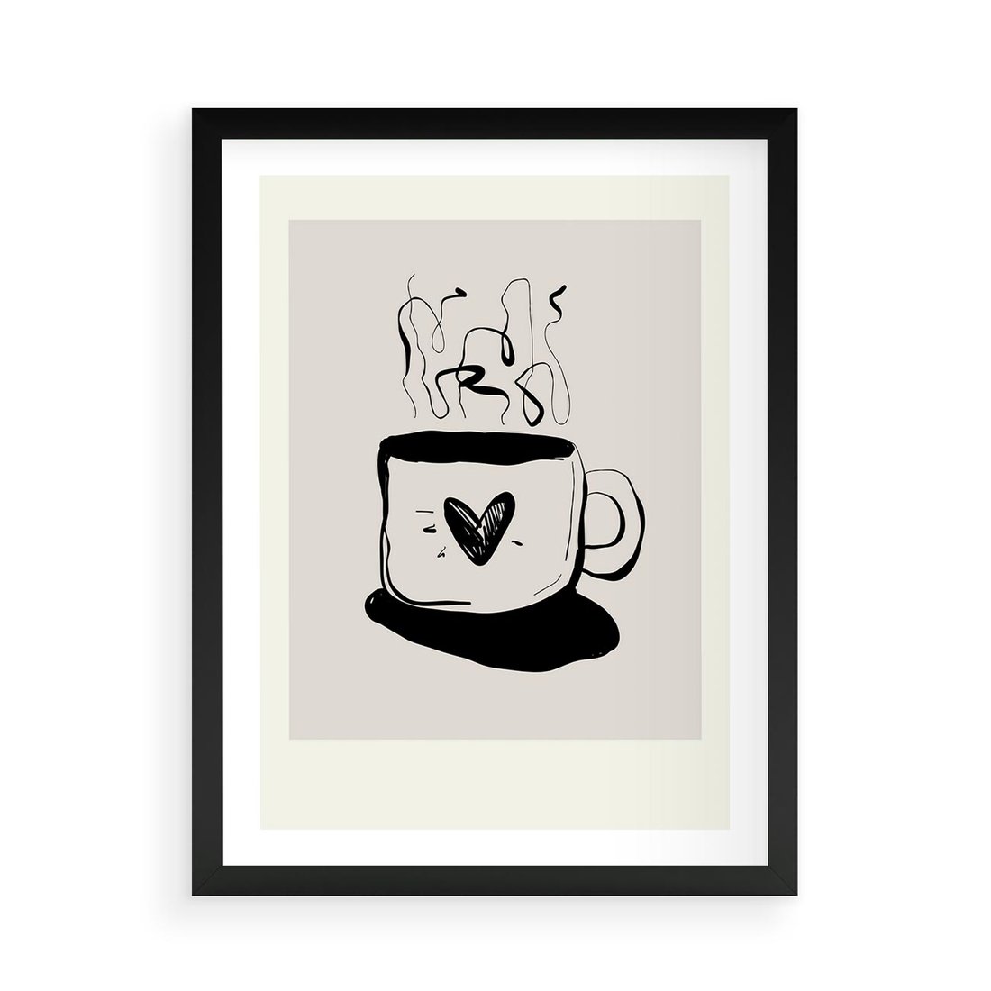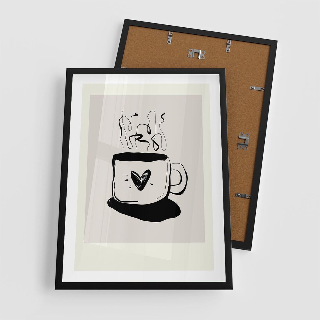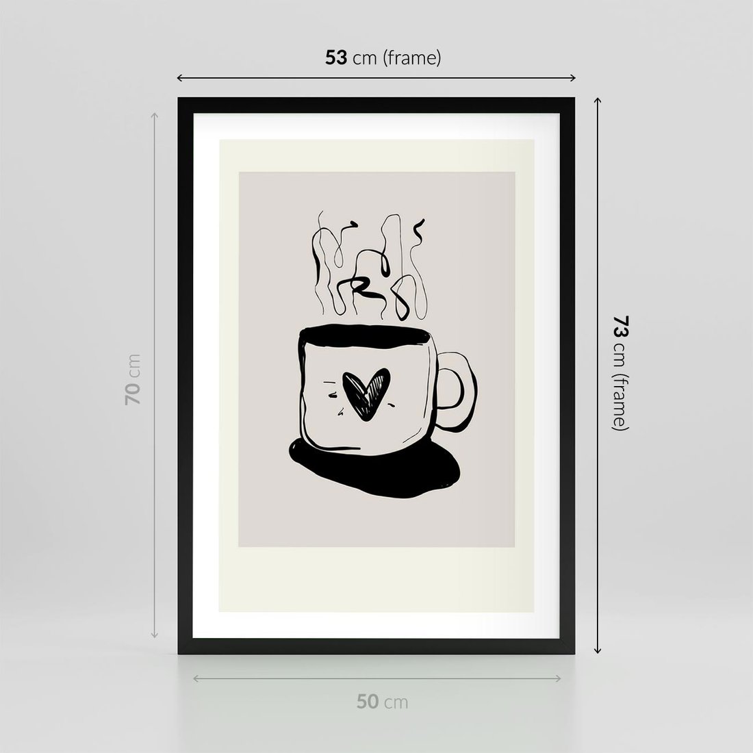 Plakat w ramie 50x70 - Grafika Kubka w Czerni i Bieli - kubek, grafika - rama czarna