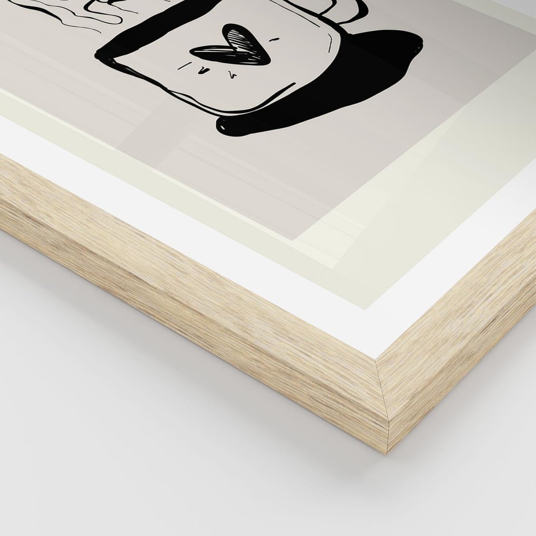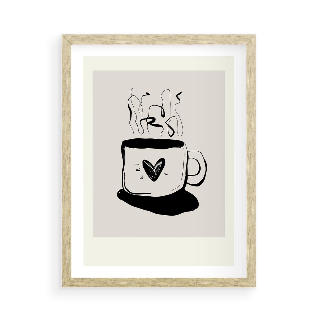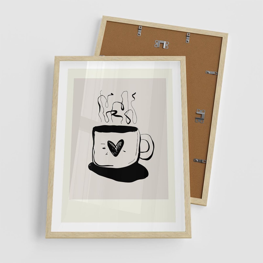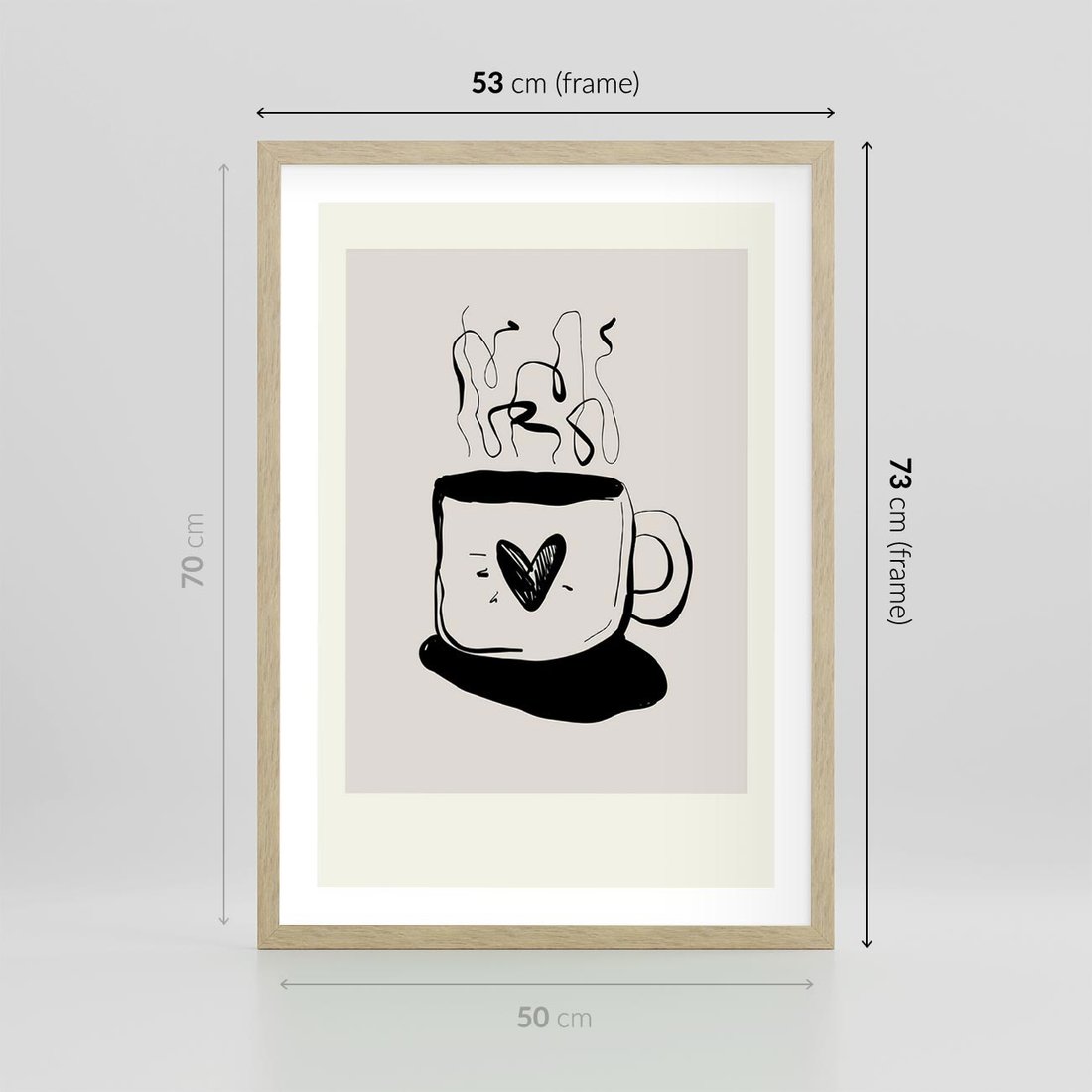 Plakat w ramie 50x70 - Grafika Kubka w Czerni i Bieli - kubek, grafika - rama drewno