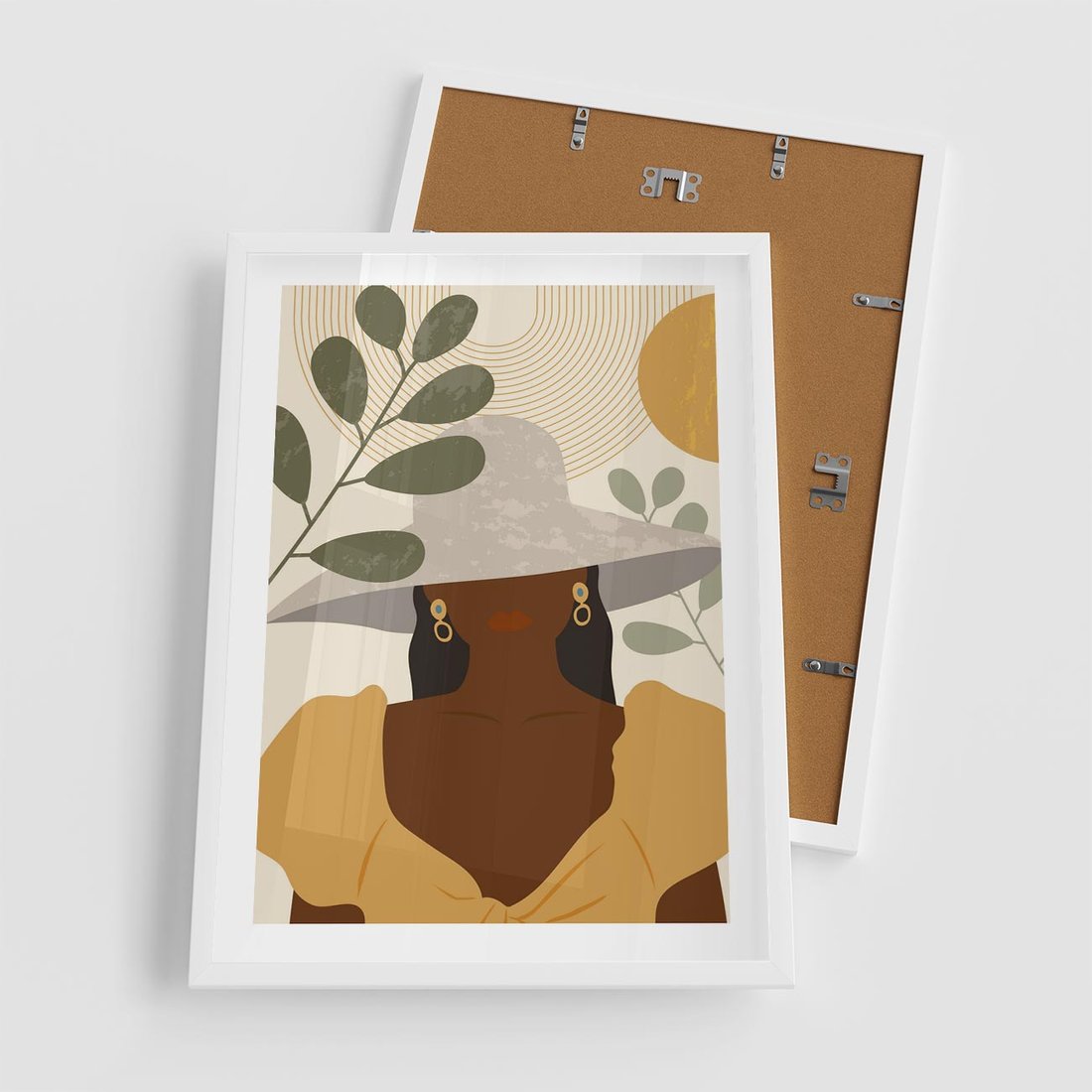 Plakat w ramie 50x70 - Grafika w Innowacyjnym Stylu - grafika, postać kobiety - rama biała