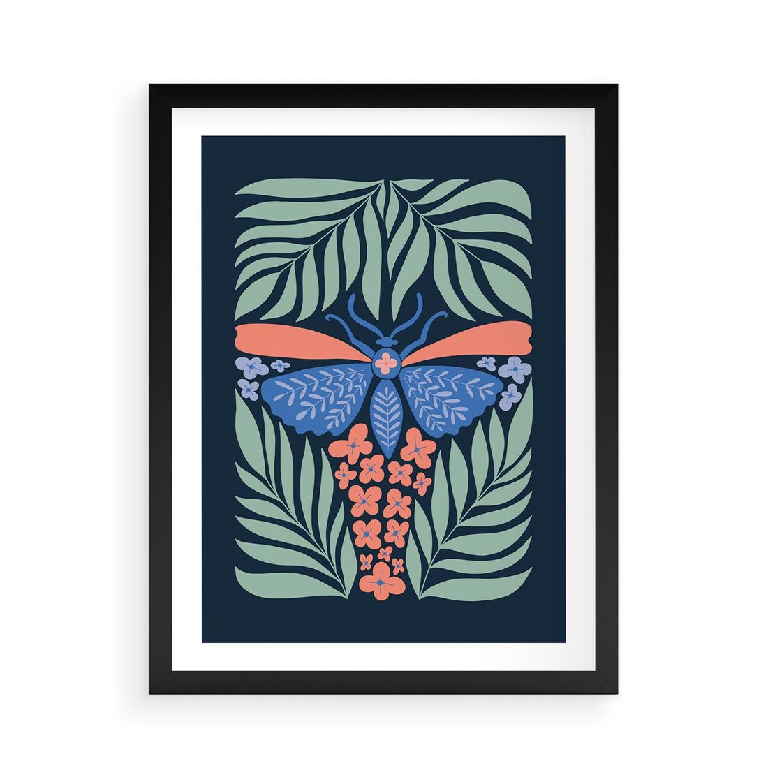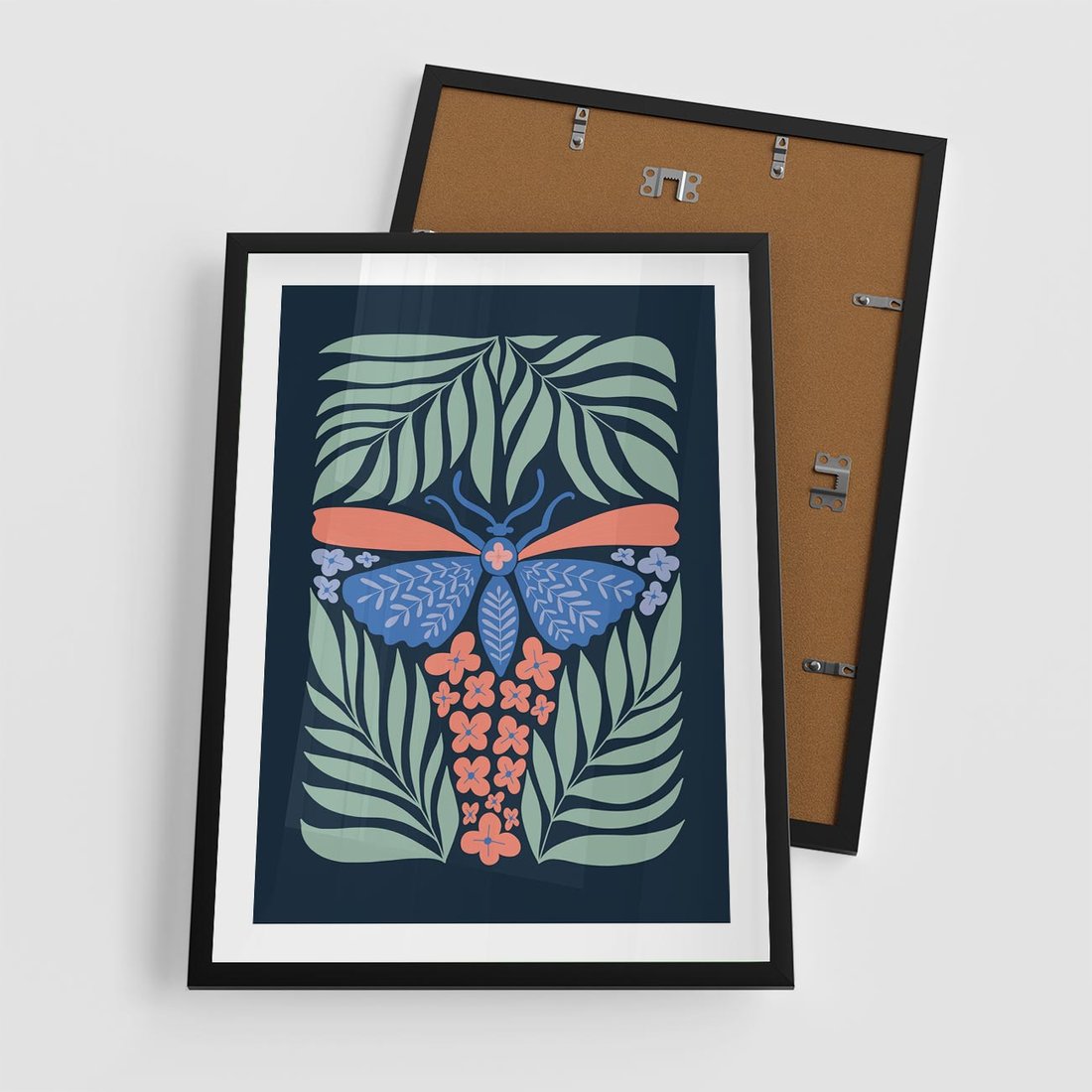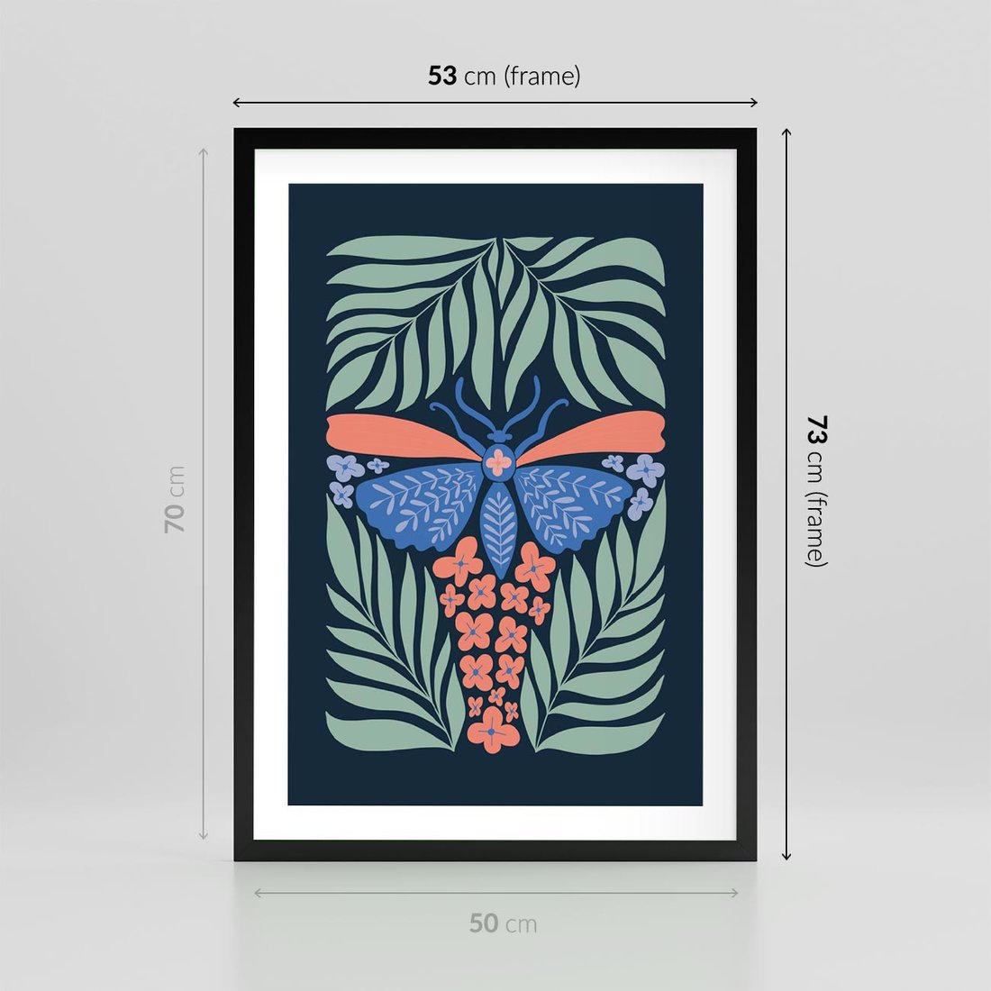Plakat w ramie 50x70 - Granatowa Noc - granatowe tło, abstrajcyjna ćma - rama czarna