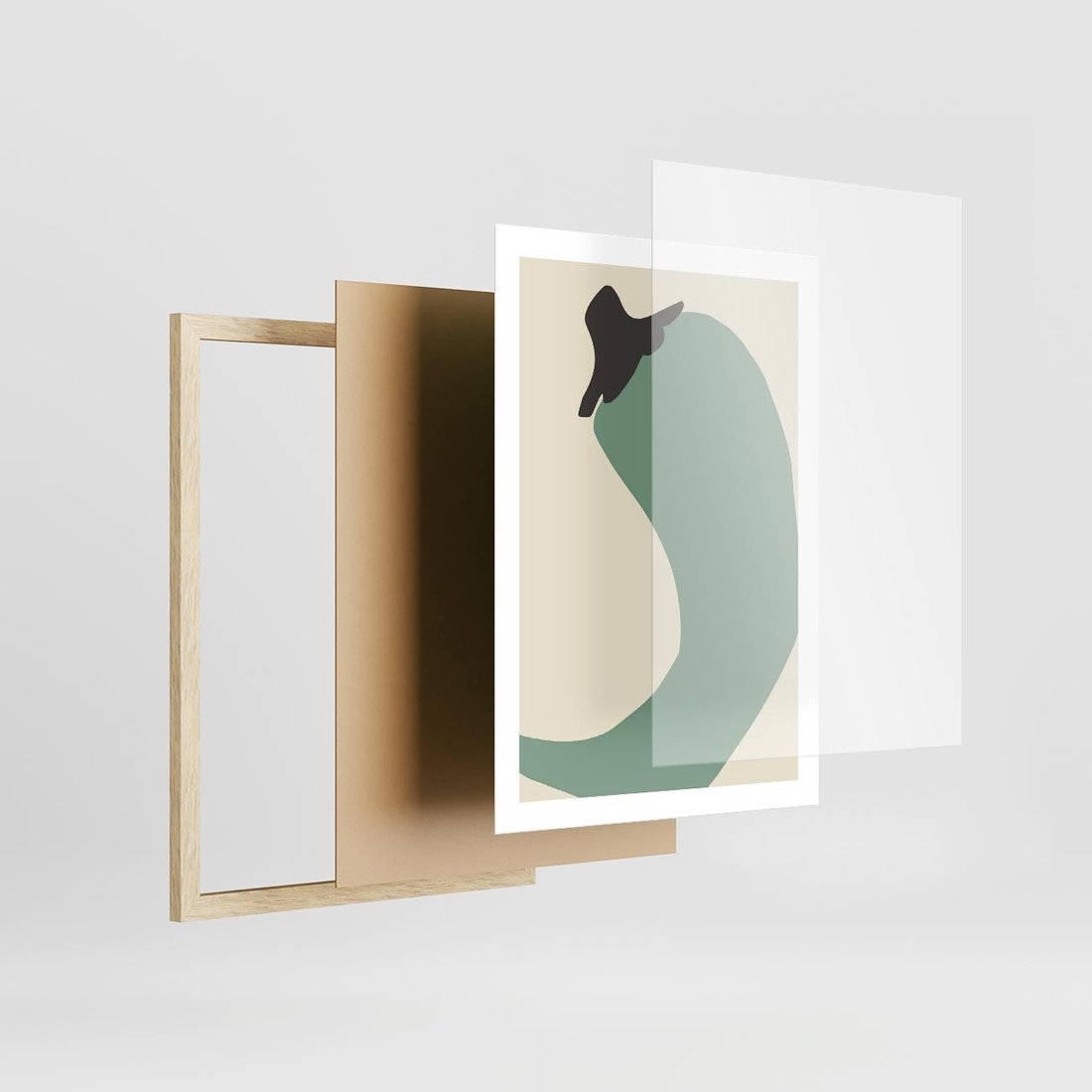 Plakat w ramie 50x70 - Granice Akwareli - abstrakcyjny minimalistyczny obraz, zielona papryczka - rama drewno