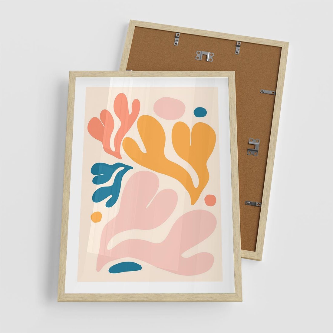 Ten nowoczesny plakat zachwyca abstrakcyjnymi, dziwnymi formami w delikatnych pastelowych kolorach. Stworzy unikalną atmosferę i ciekawy akcent w Twoim wnętrzu.