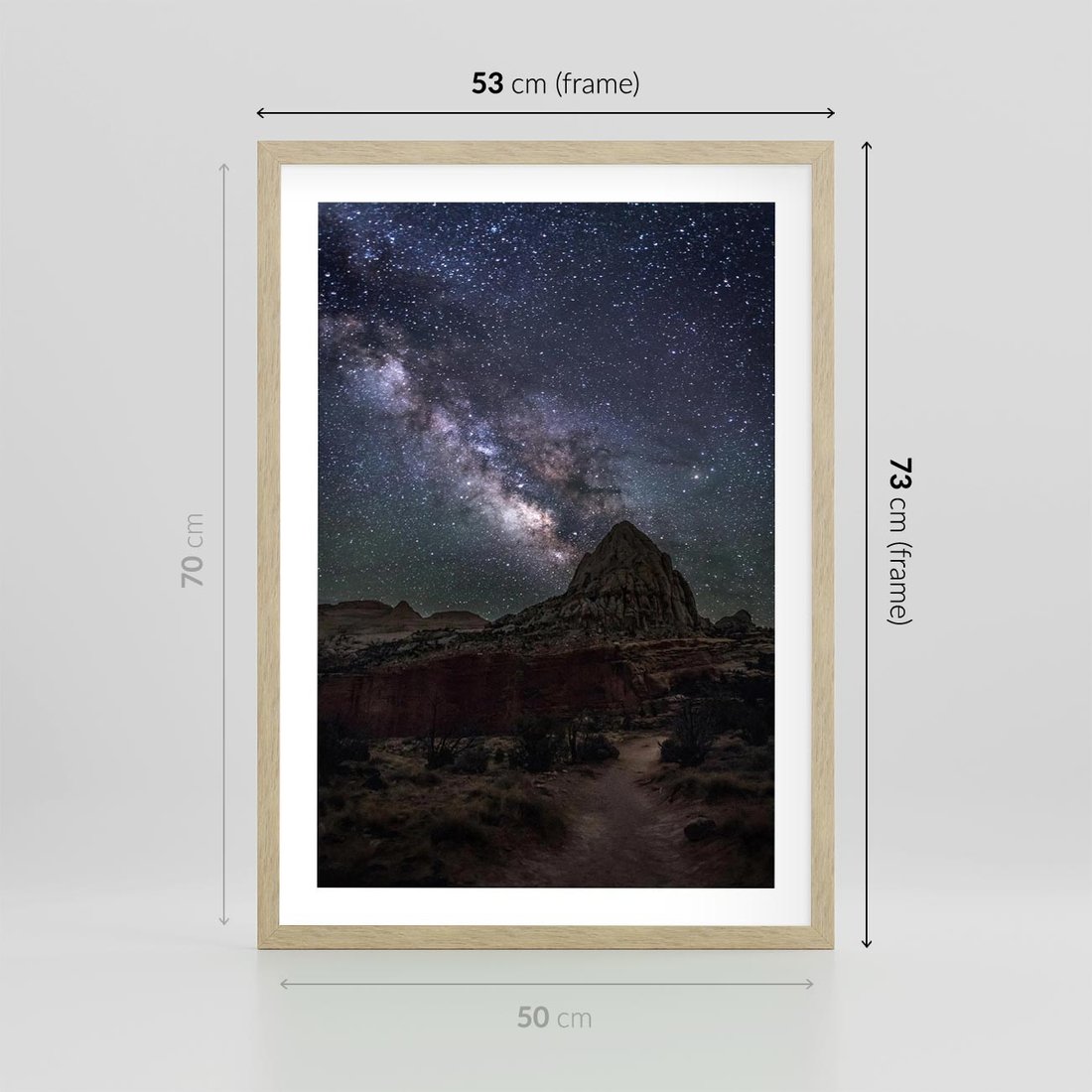 Plakat w ramie 50x70 - Gwiaździsta Noc na Pustyni - noc na pustyni, gwiździste niebo - rama drewno