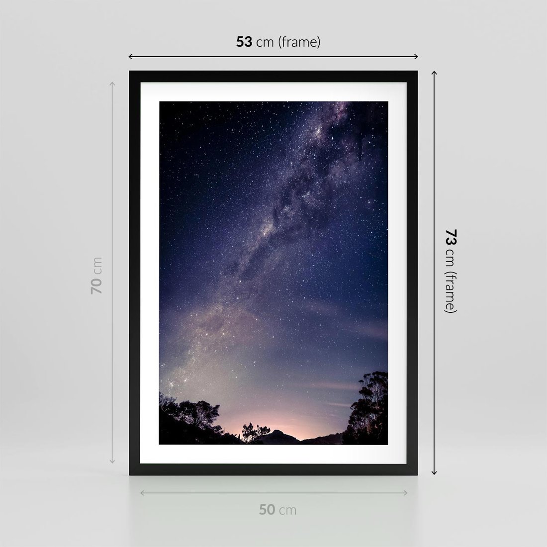 Plakat w ramie 50x70 - Gwiaździste Ujęcie - gwiaździste niebo, noc - rama czarna