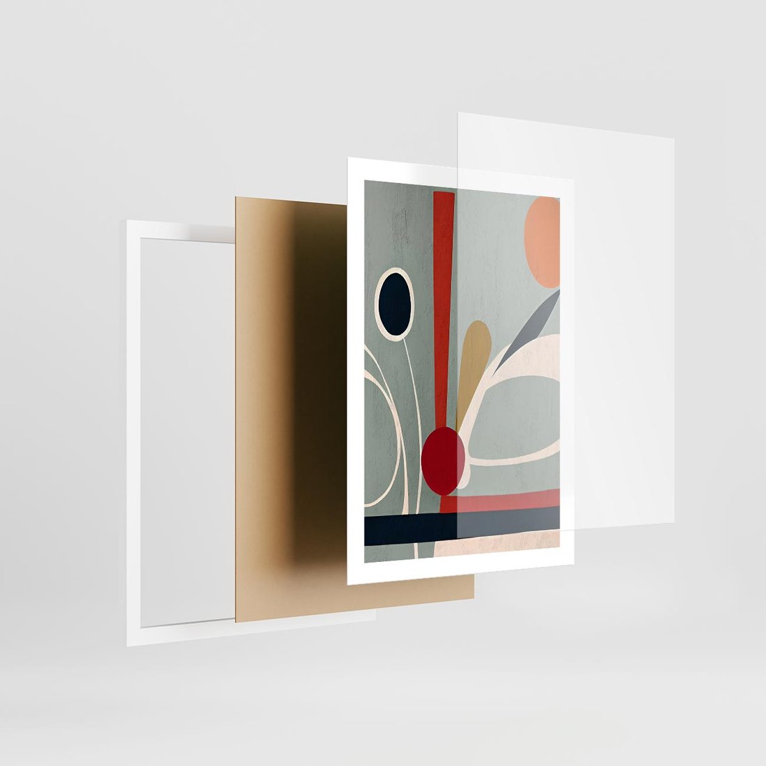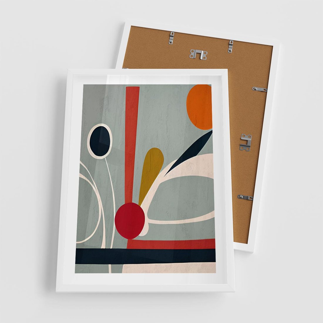 Plakat w ramie 50x70 - Harmonia Kolorowych Impulsów - abstrakcyjny obraz olejny, dziwne formy - rama biała