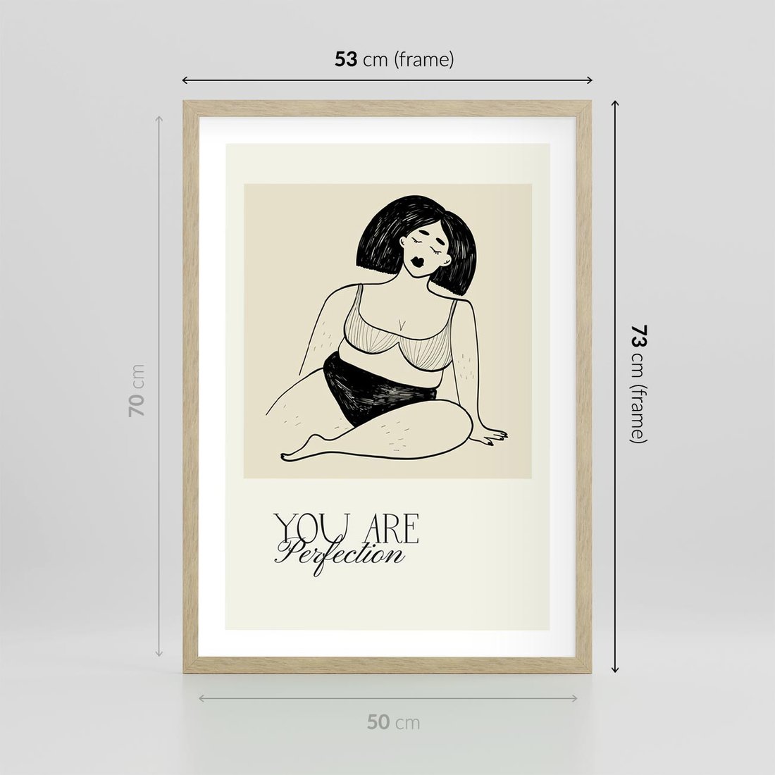 Plakat w ramie 50x70 - Harmonia Kształtów Bez Granic - siła kobiecości, rysunek - rama drewno