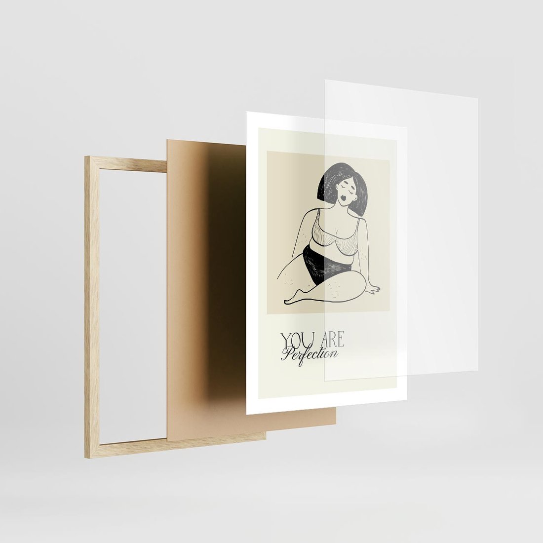 Ten plakat oddaje siłę kobiecej natury poprzez delikatny rysunek kobiety w bieliźnie. W połączeniu z mocną typografią, wyraża niezłomną pewność siebie i wyjątkowość kobiet.
