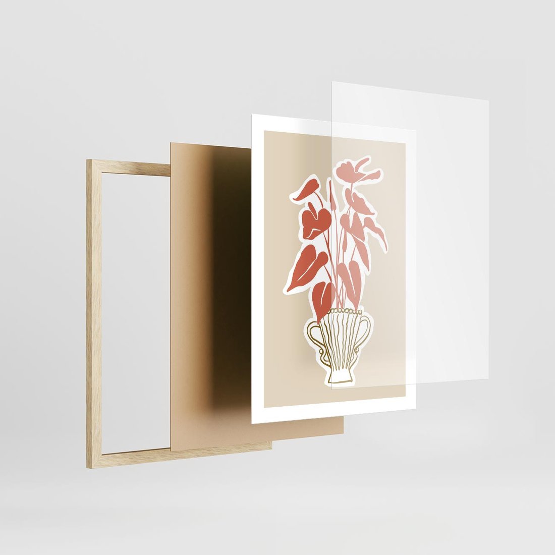Plakat w ramie 50x70 - Harmonijne Echa - abstrakcyjne kwiaty liście, elegancka kompozycja - rama drewno