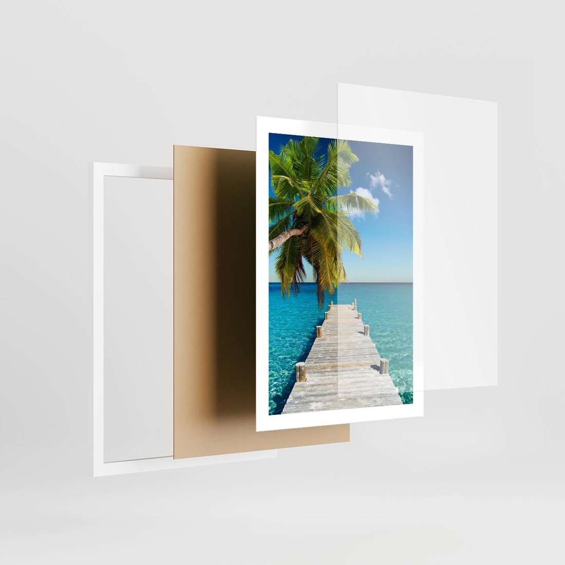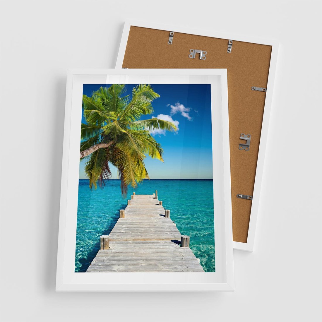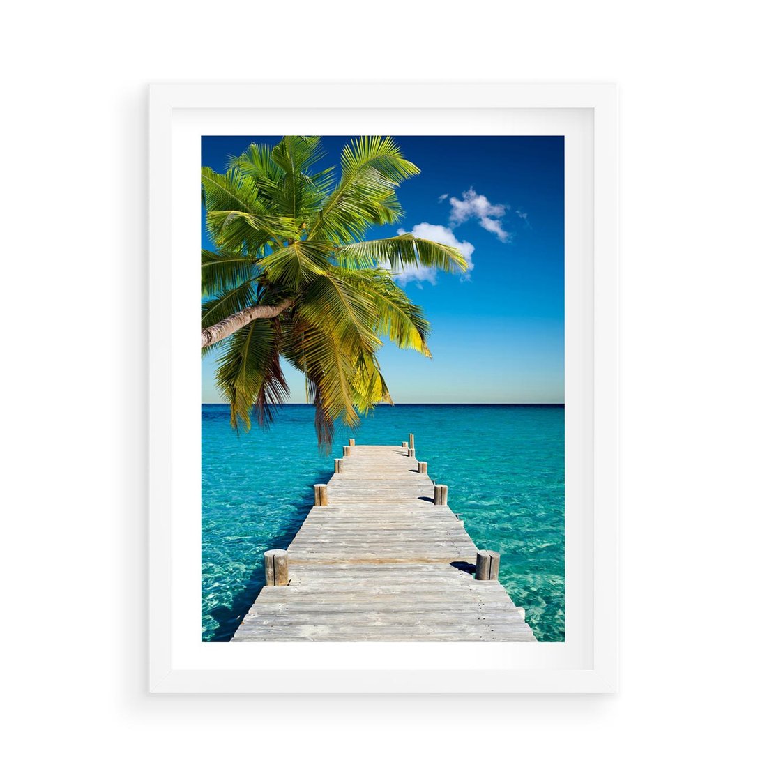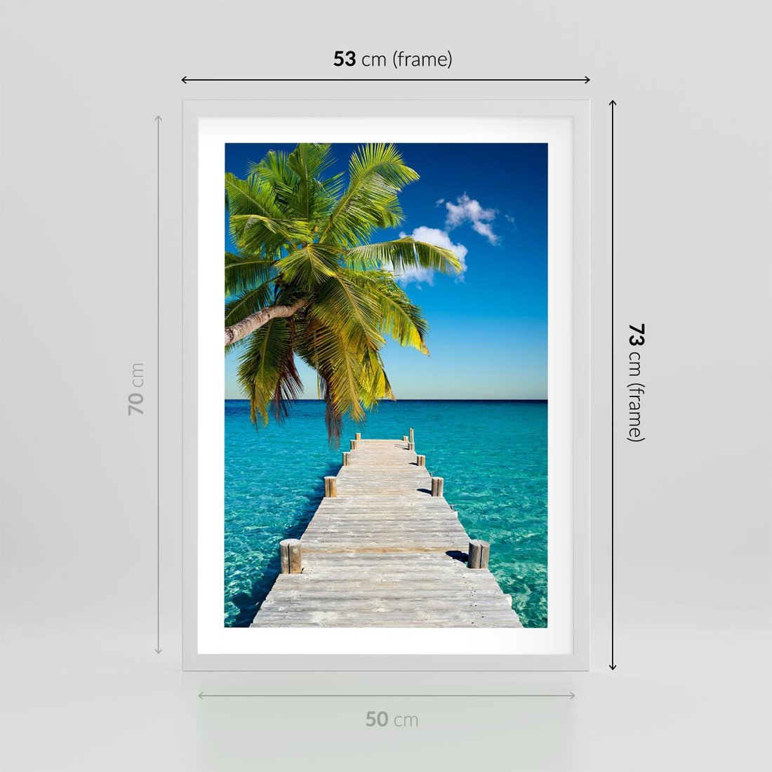 Plakat w ramie 50x70 - Hawajskie Palmy - palma, morze - rama biała