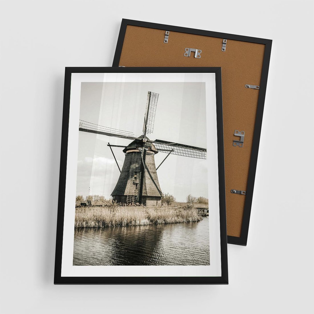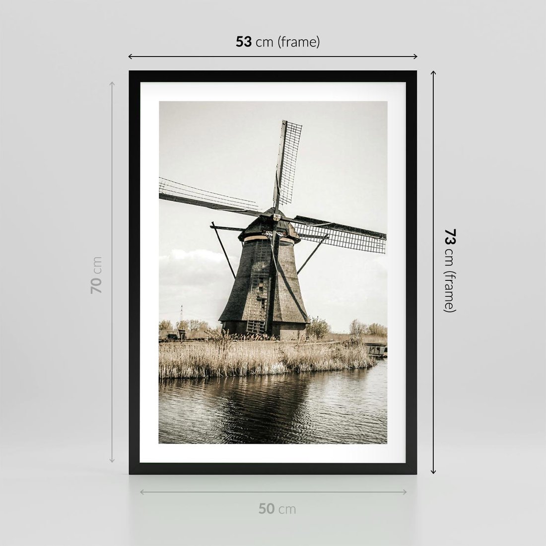 - Plakat w ramie 50x70 - Holenderski Wiatrak w Sepii