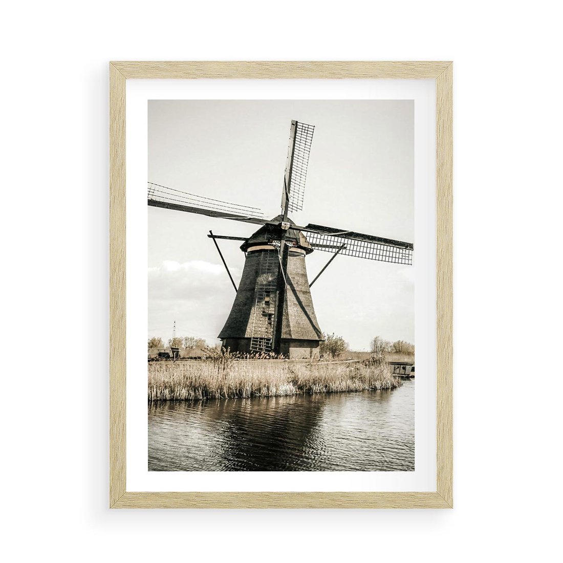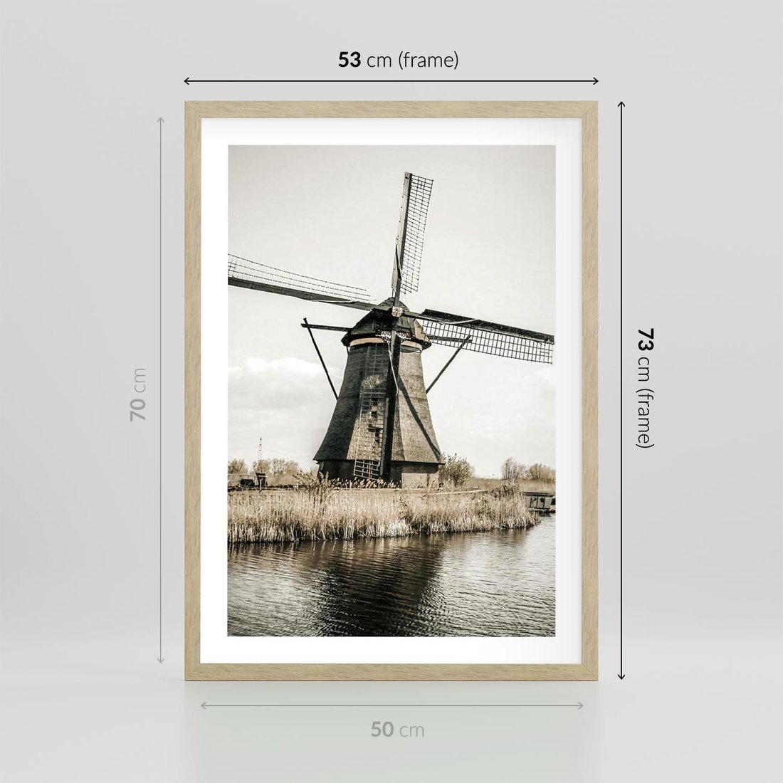 - Plakat w ramie 50x70 - Holenderski Wiatrak w Sepii