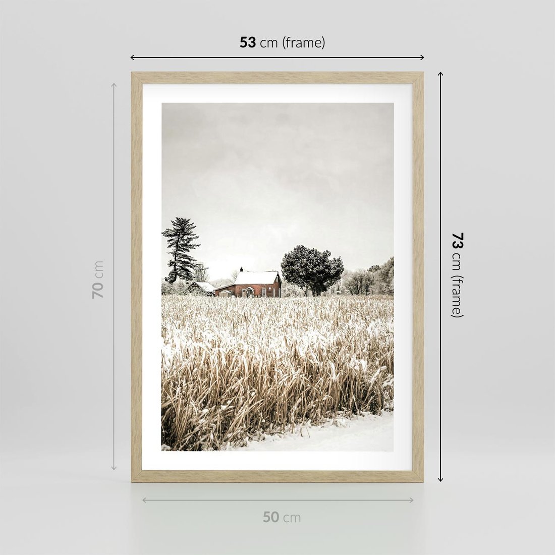 Plakat w ramie 50x70 - Idylliczna Zima - zima, krajobraz zimowy - rama drewno