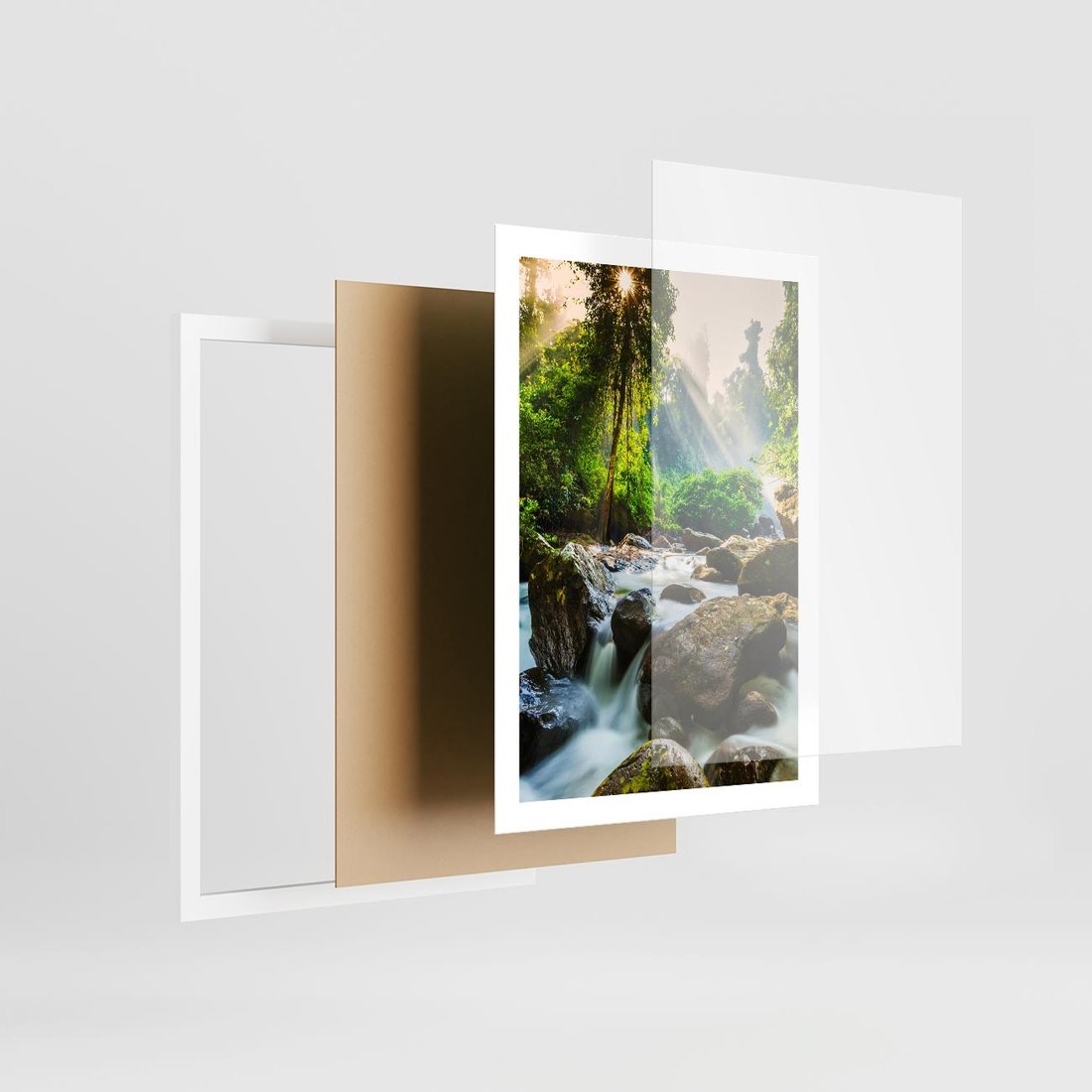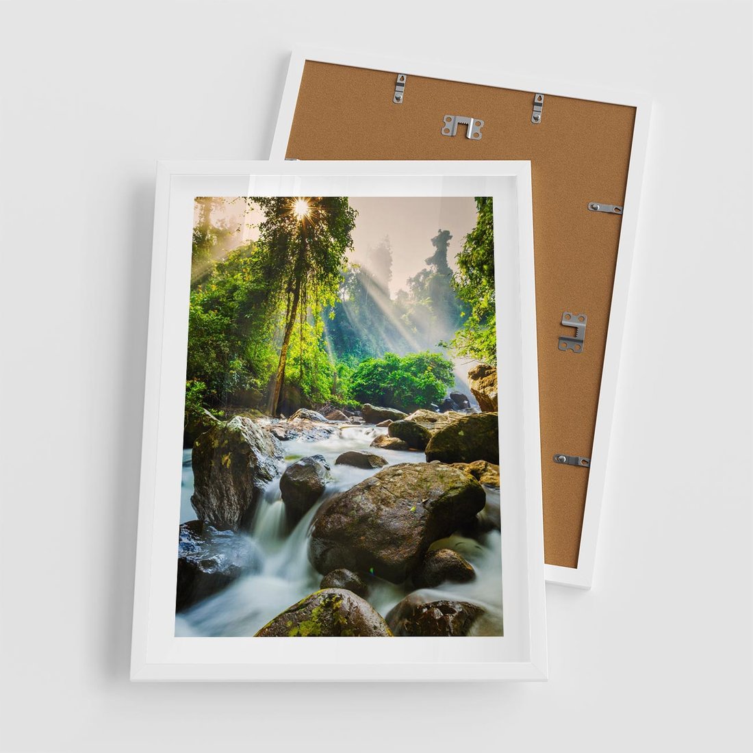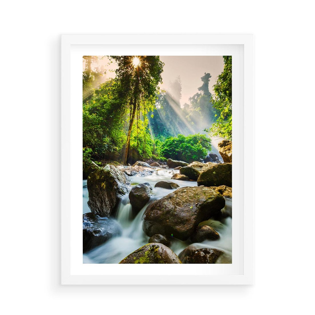 Plakat w ramie 50x70 - Idylliczny strumyk w urokliwym lesie - strumyk, las - rama biała