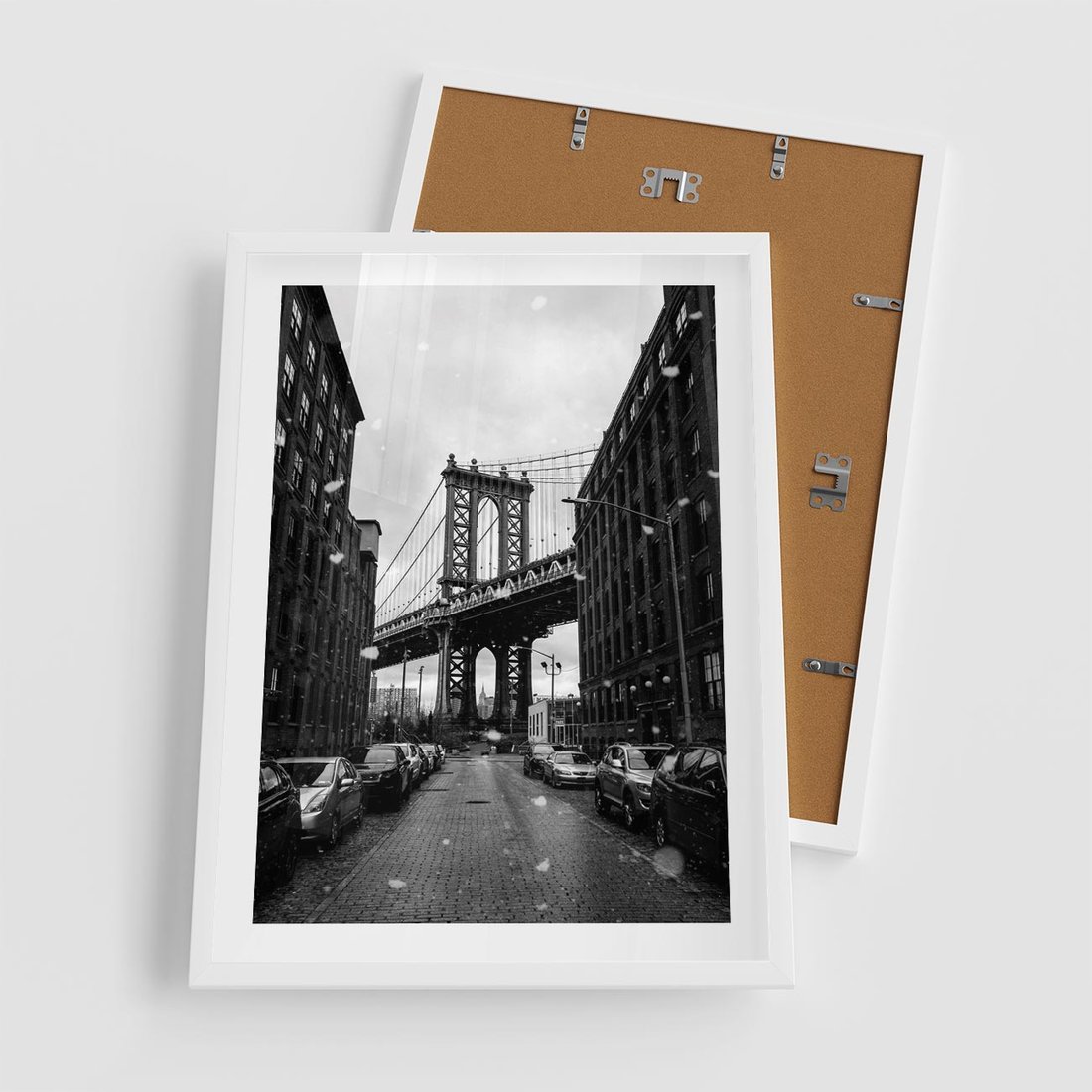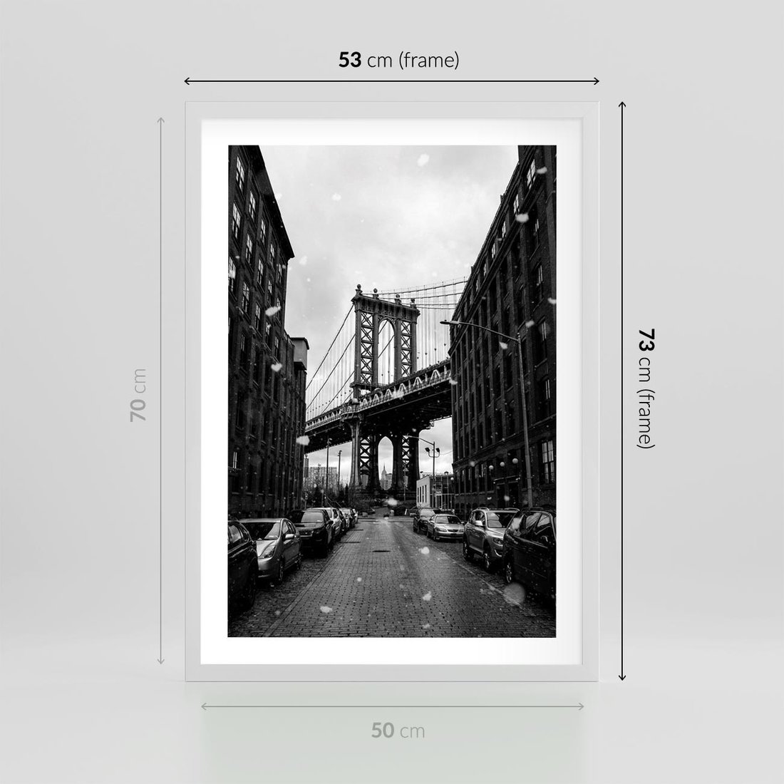 Plakat w ramie 50x70 - Ikona Miasta - Nowy Jork, most - rama biała