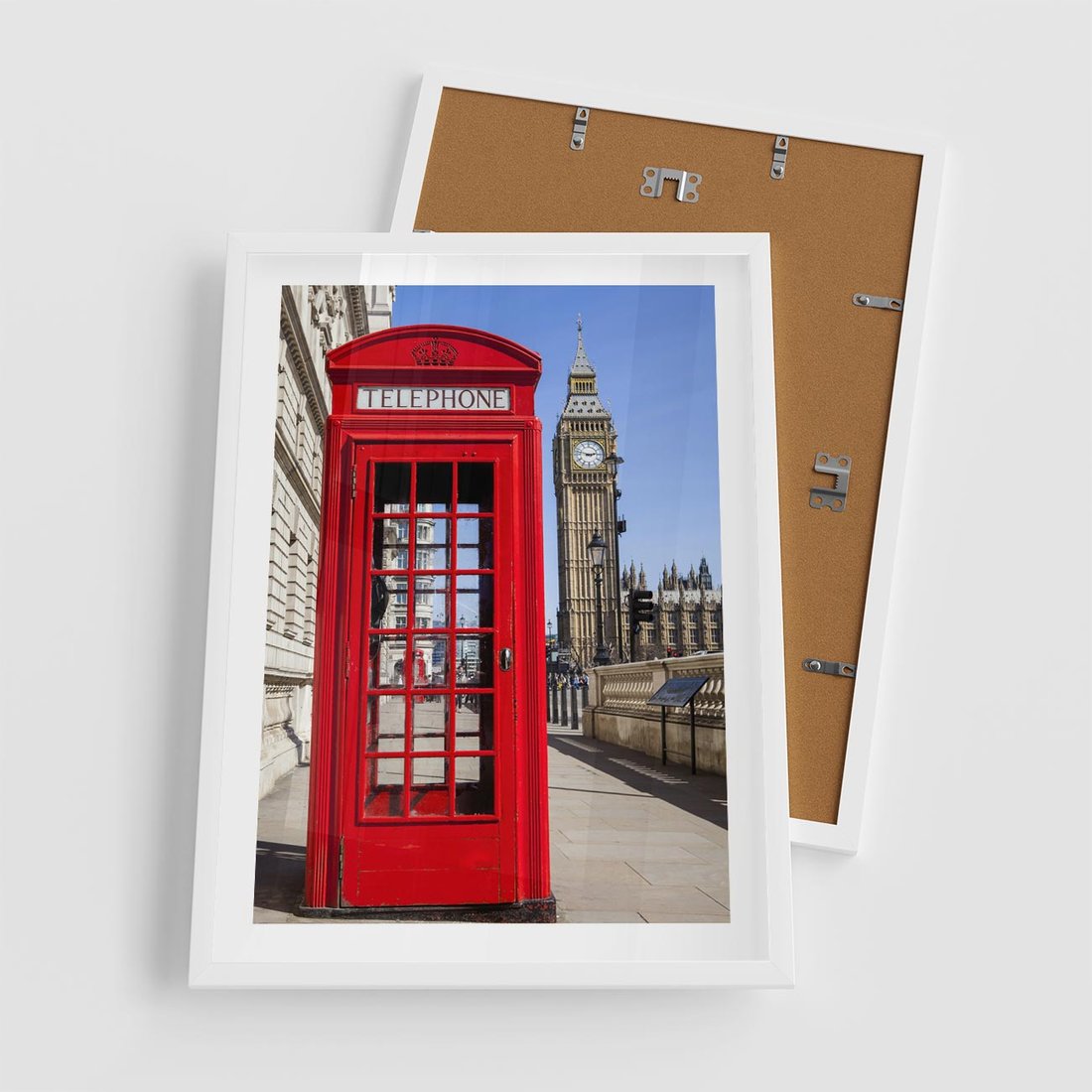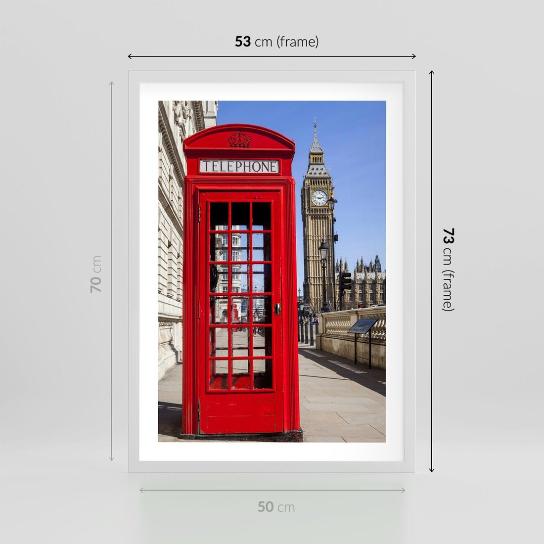 Plakat w ramie 50x70 - Ikoniczna budka telefoniczna w Londynie - budka, telefoniczna - rama biała