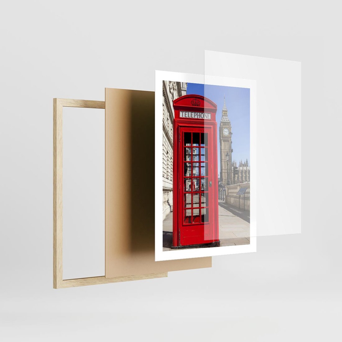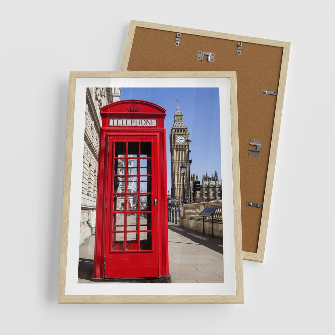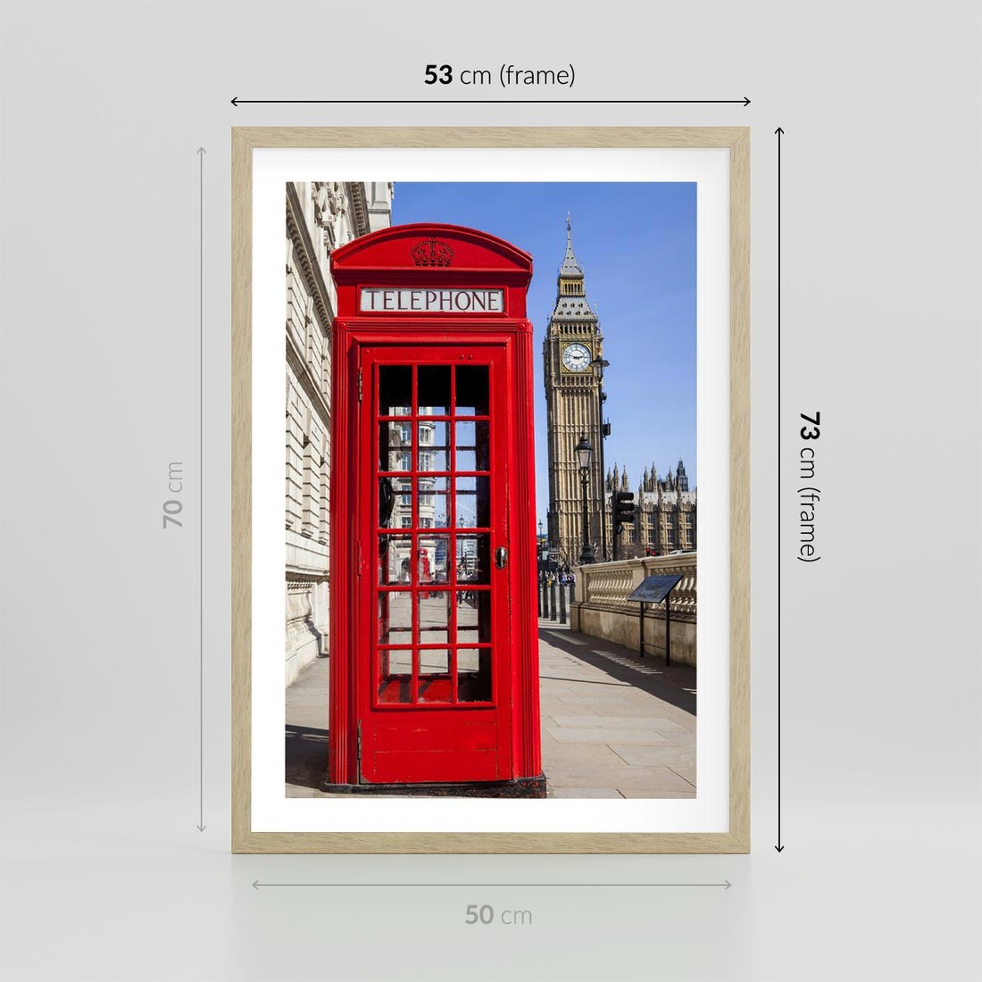 Plakat w ramie 50x70 - Ikoniczna budka telefoniczna w Londynie - budka, telefoniczna - rama drewno