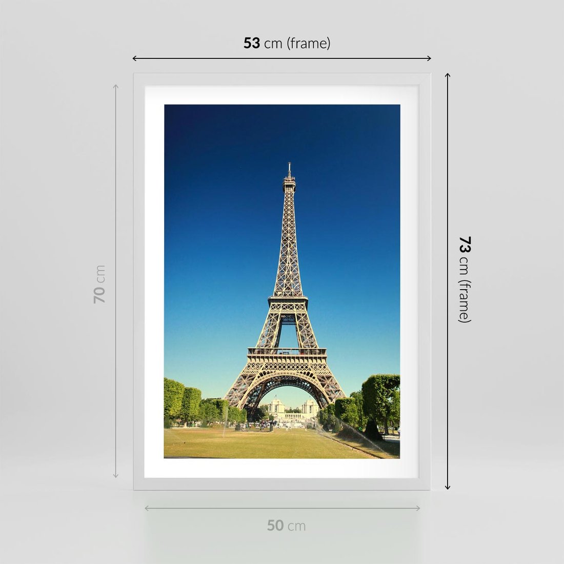 Plakat w ramie 50x70 - Ikoniczny symbol miasta - wieża, Eiffla - rama biała