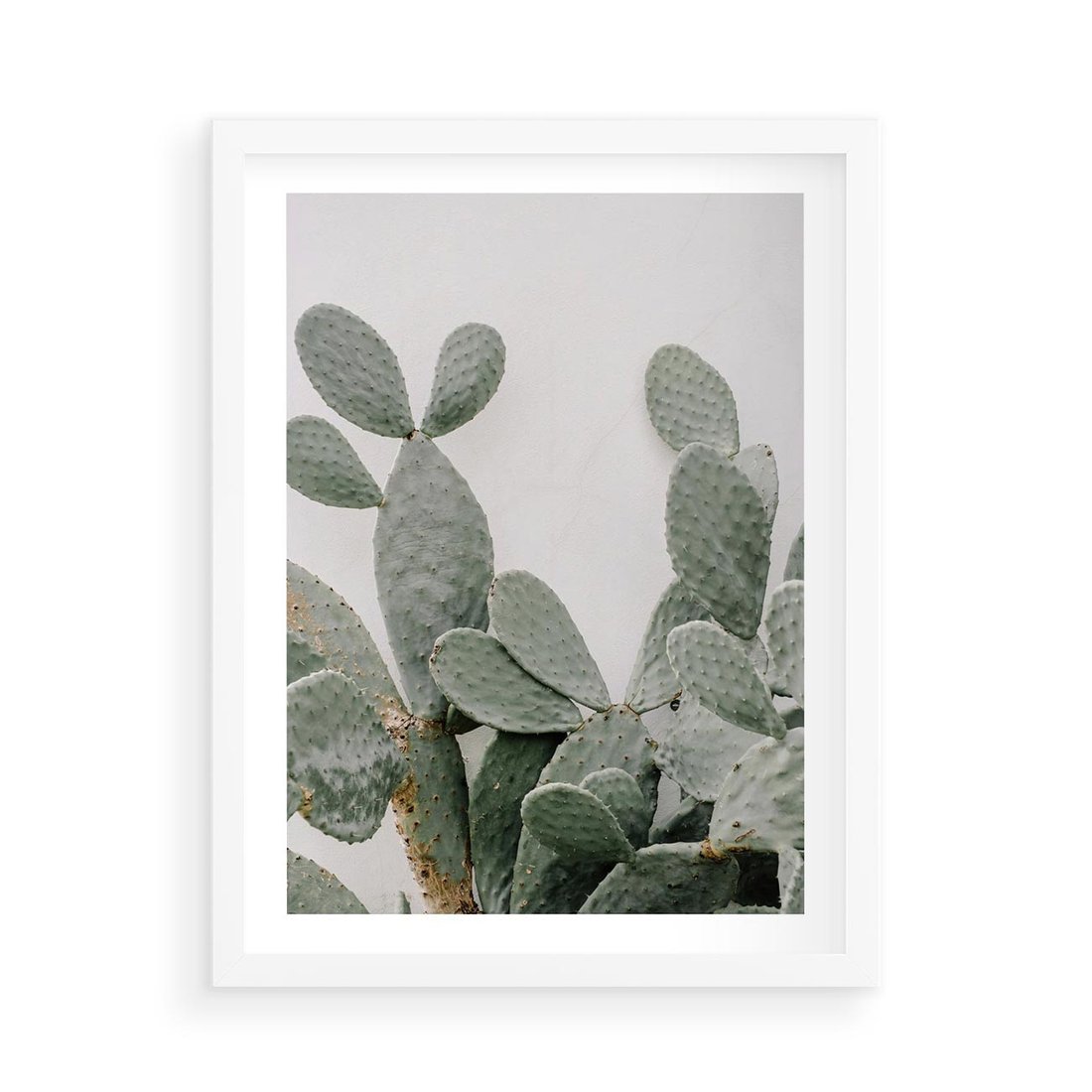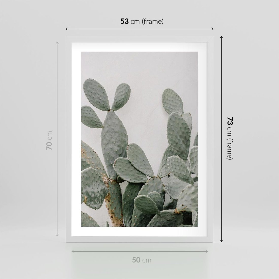 Plakat w ramie 50x70 - Imponujący Kaktus - duży kaktus, opuncja - rama biała
