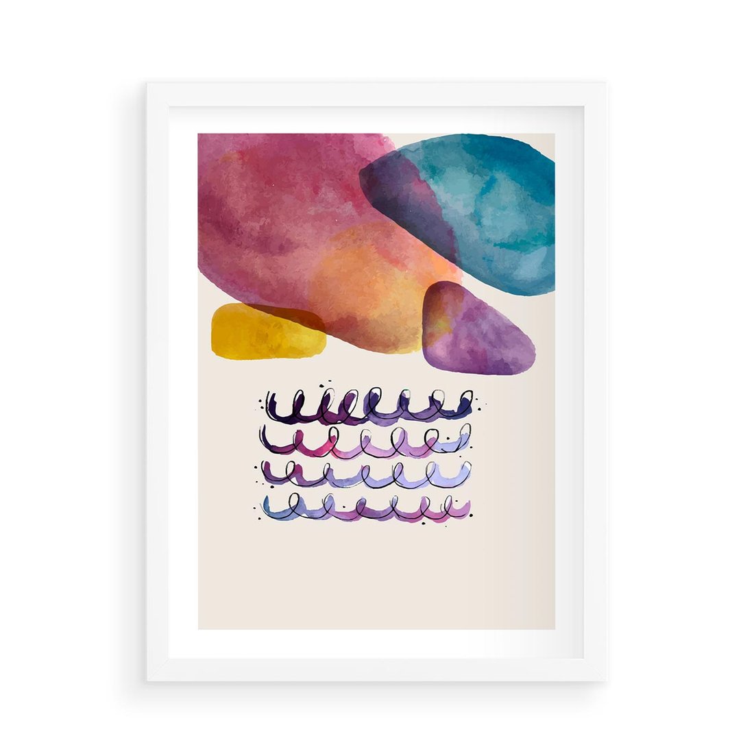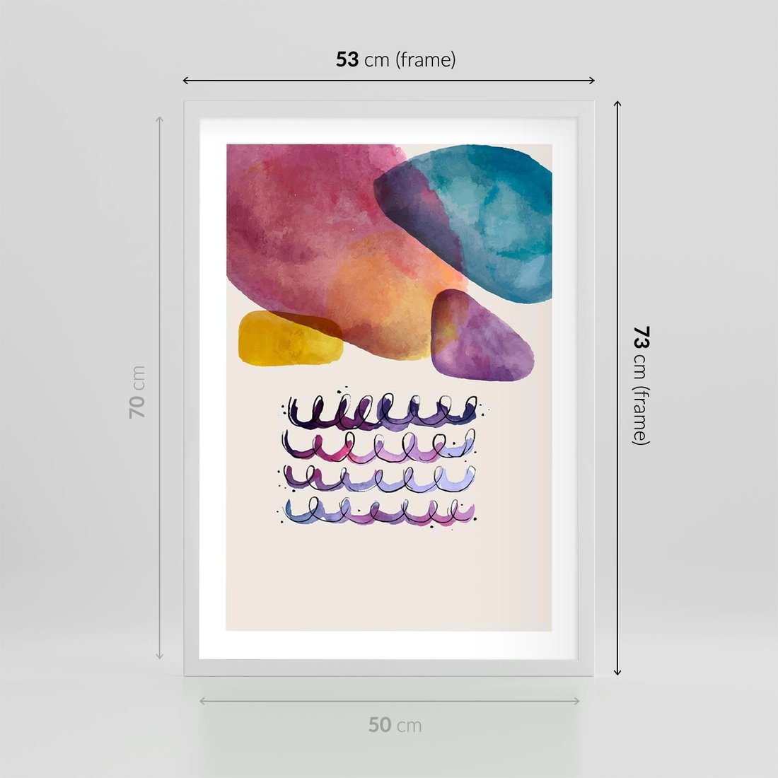 Plakat w ramie 50x70 - Impresje Akwarelowej Przestrzeni - kolorowe pastelowe plamy, rozmyte żywe kolory - rama biała