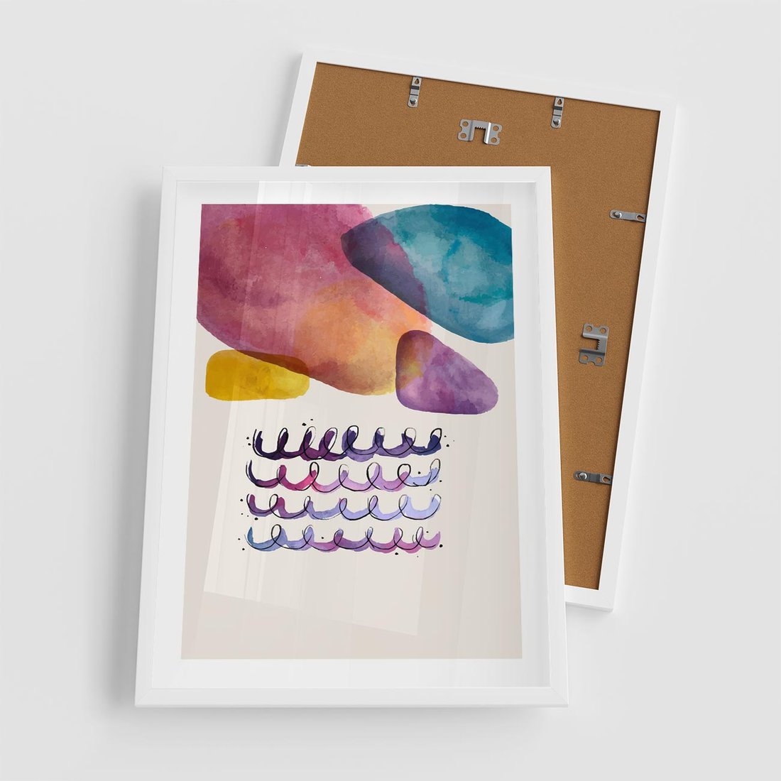 Nasz minimalistyczny plakat to zawiłe kolorowe pastelowe plamy w żywych odcieniach, z delikatnymi szlaczkami. Rozmyte kontury tworzą wrażenie subtelności i dynamiki, wprowadzając do Twojej przestrzeni artystyczną i spokojną atmosferę.