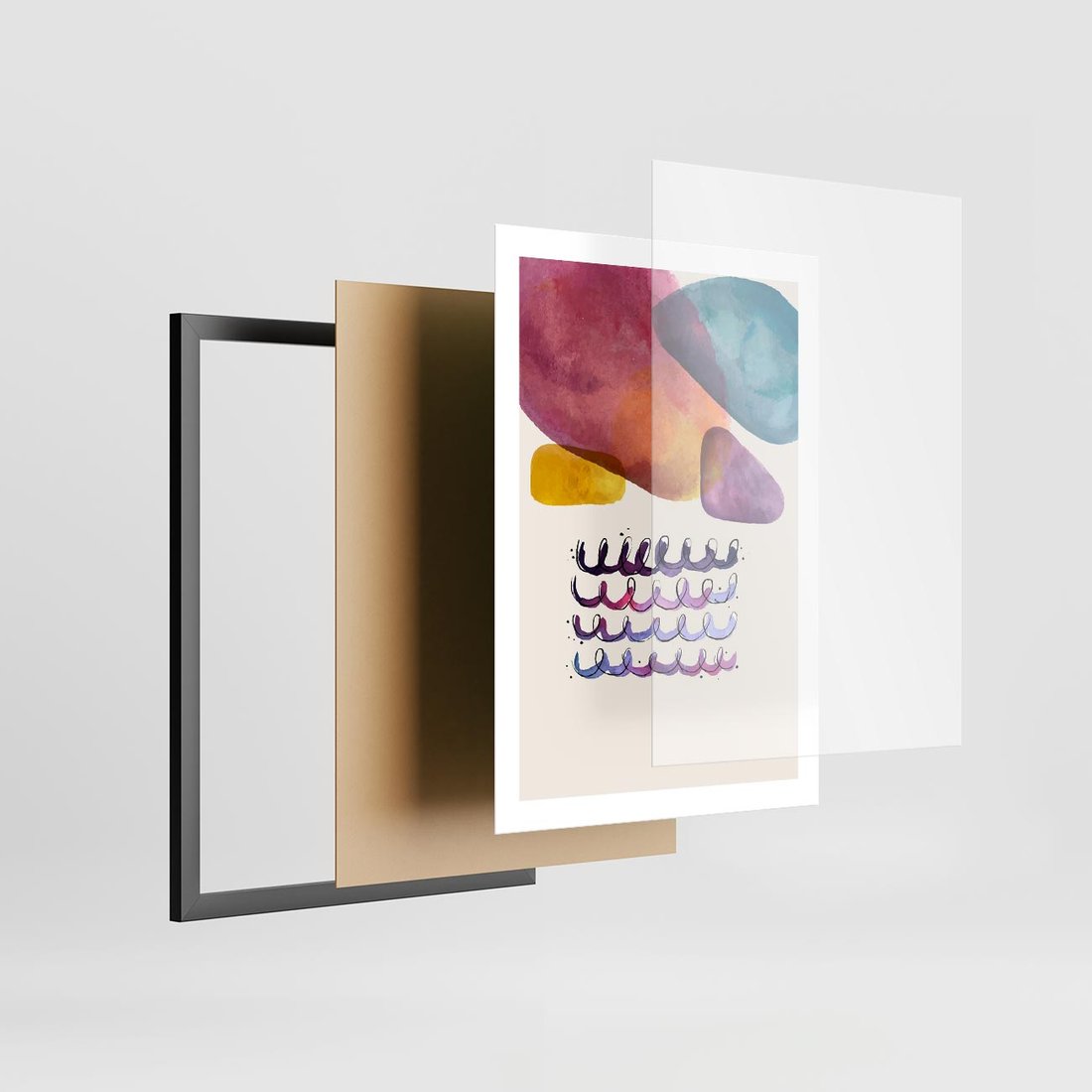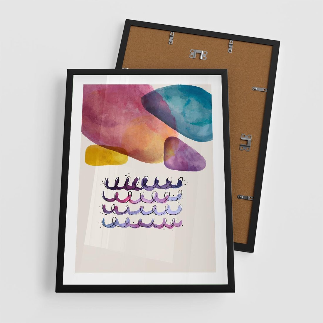 Nasz minimalistyczny plakat to zawiłe kolorowe pastelowe plamy w żywych odcieniach, z delikatnymi szlaczkami. Rozmyte kontury tworzą wrażenie subtelności i dynamiki, wprowadzając do Twojej przestrzeni artystyczną i spokojną atmosferę.