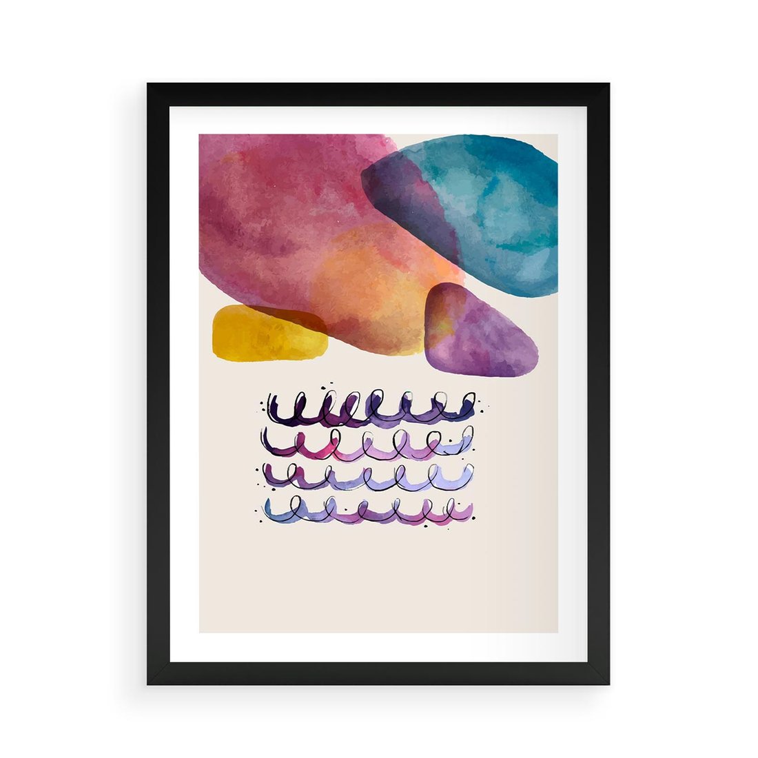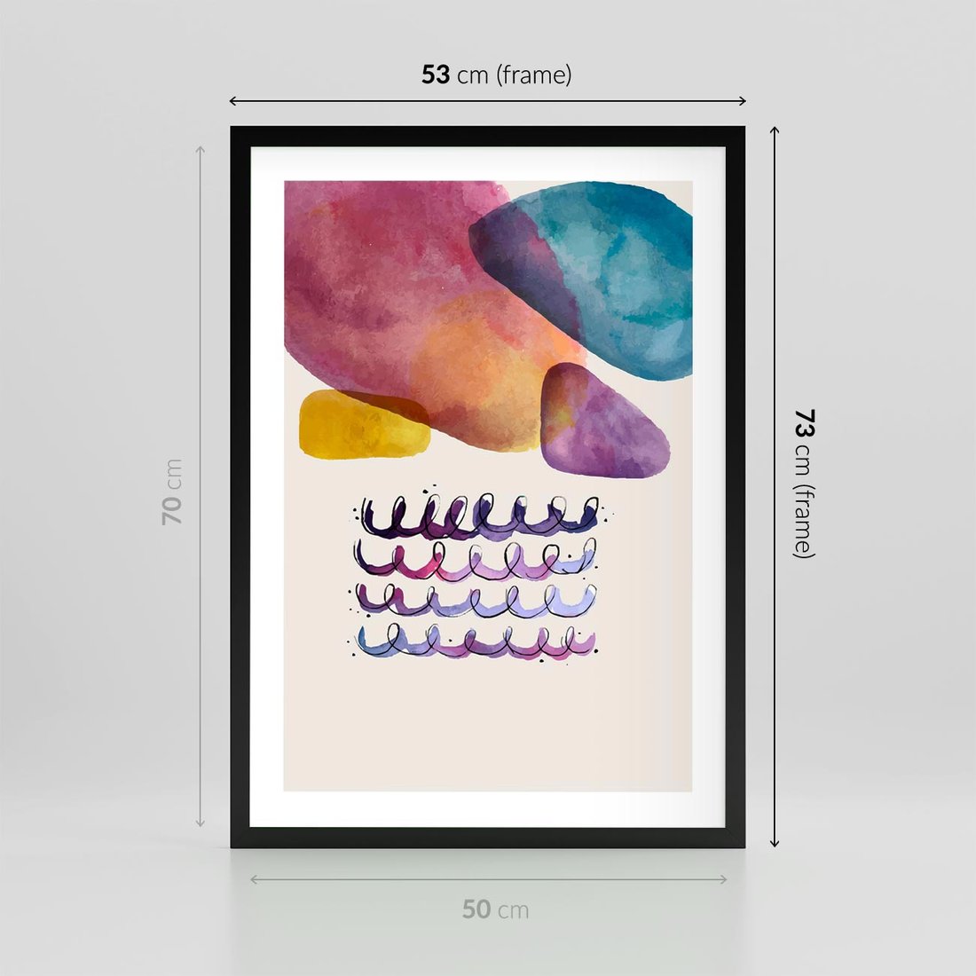 Plakat w ramie 50x70 - Impresje Akwarelowej Przestrzeni - kolorowe pastelowe plamy, rozmyte żywe kolory - rama czarna