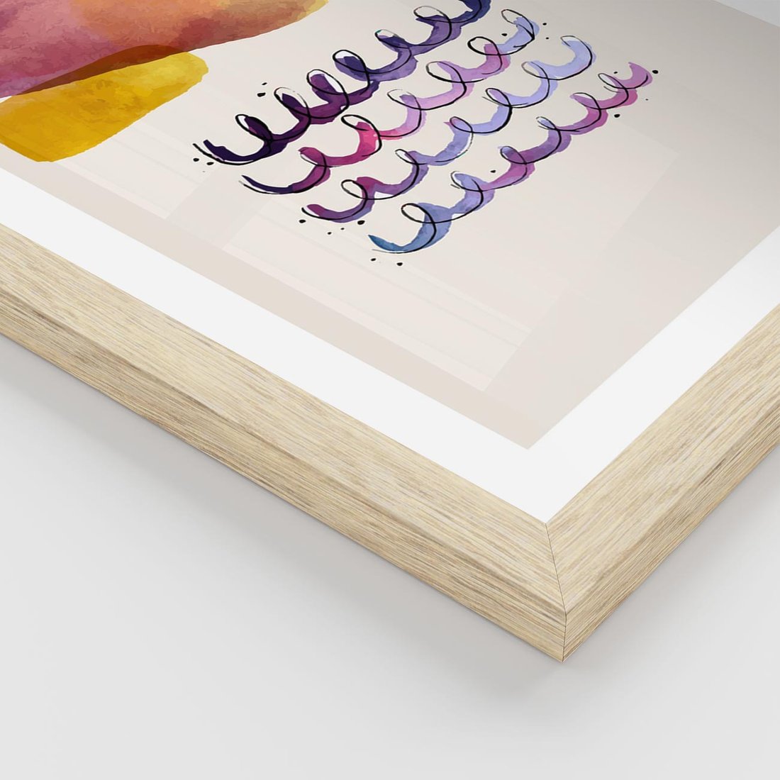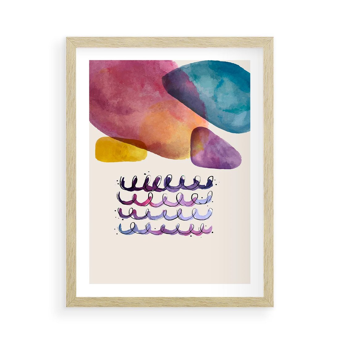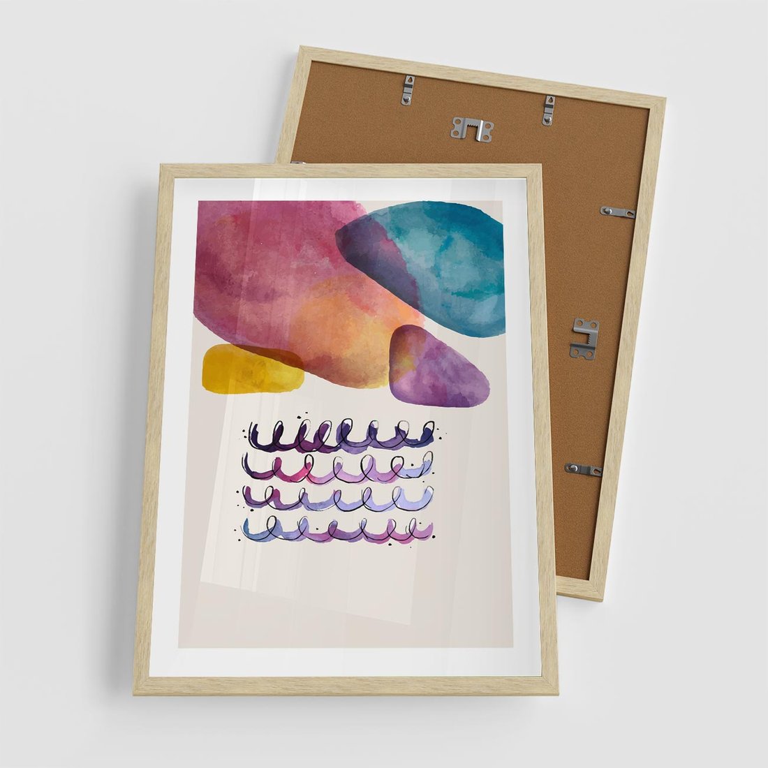 Plakat w ramie 50x70 - Impresje Akwarelowej Przestrzeni - kolorowe pastelowe plamy, rozmyte żywe kolory - rama drewno