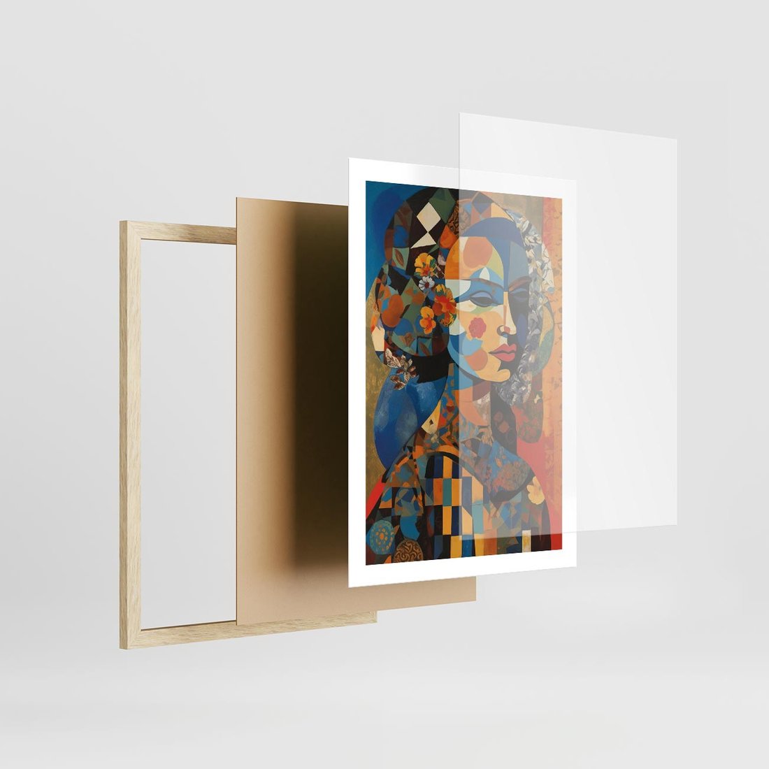Plakat w ramie 50x70 - Impresje Cichego Szeptu - abstrakcyjny obraz, portret kobiety - rama drewno