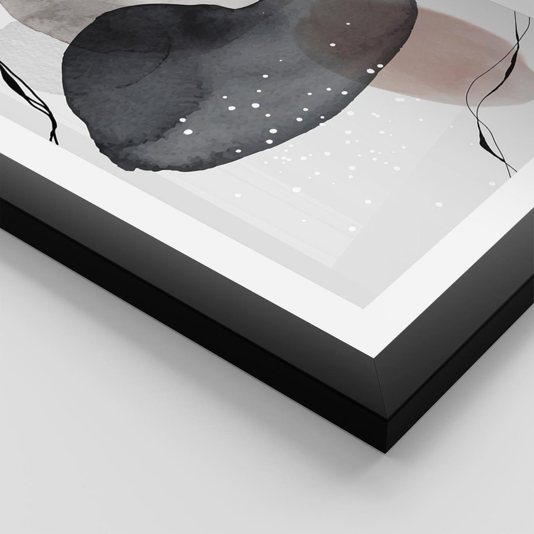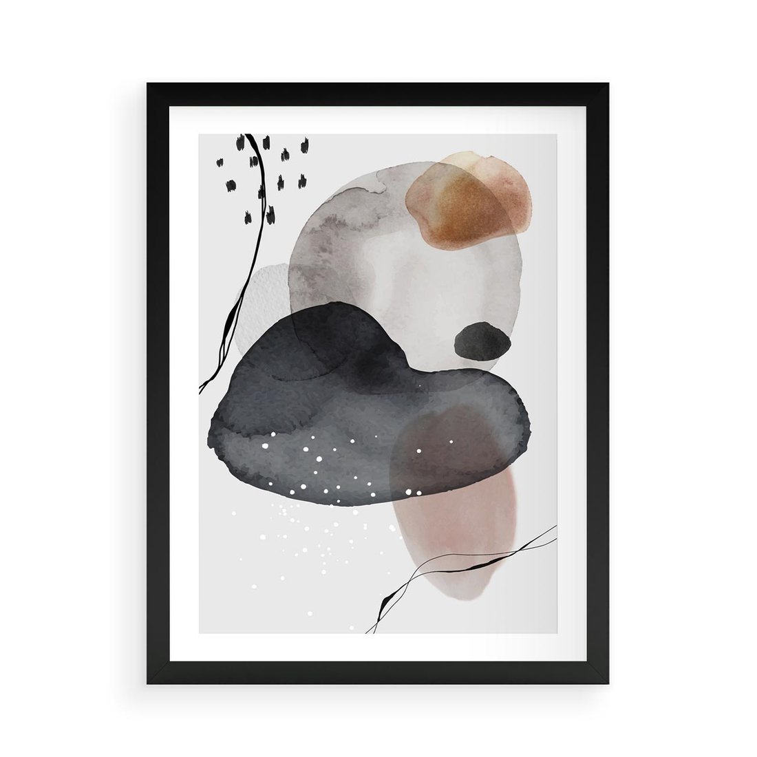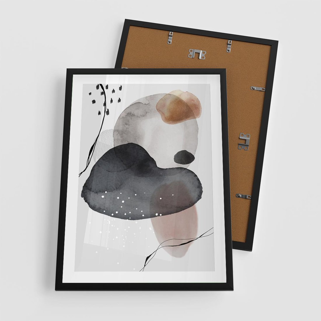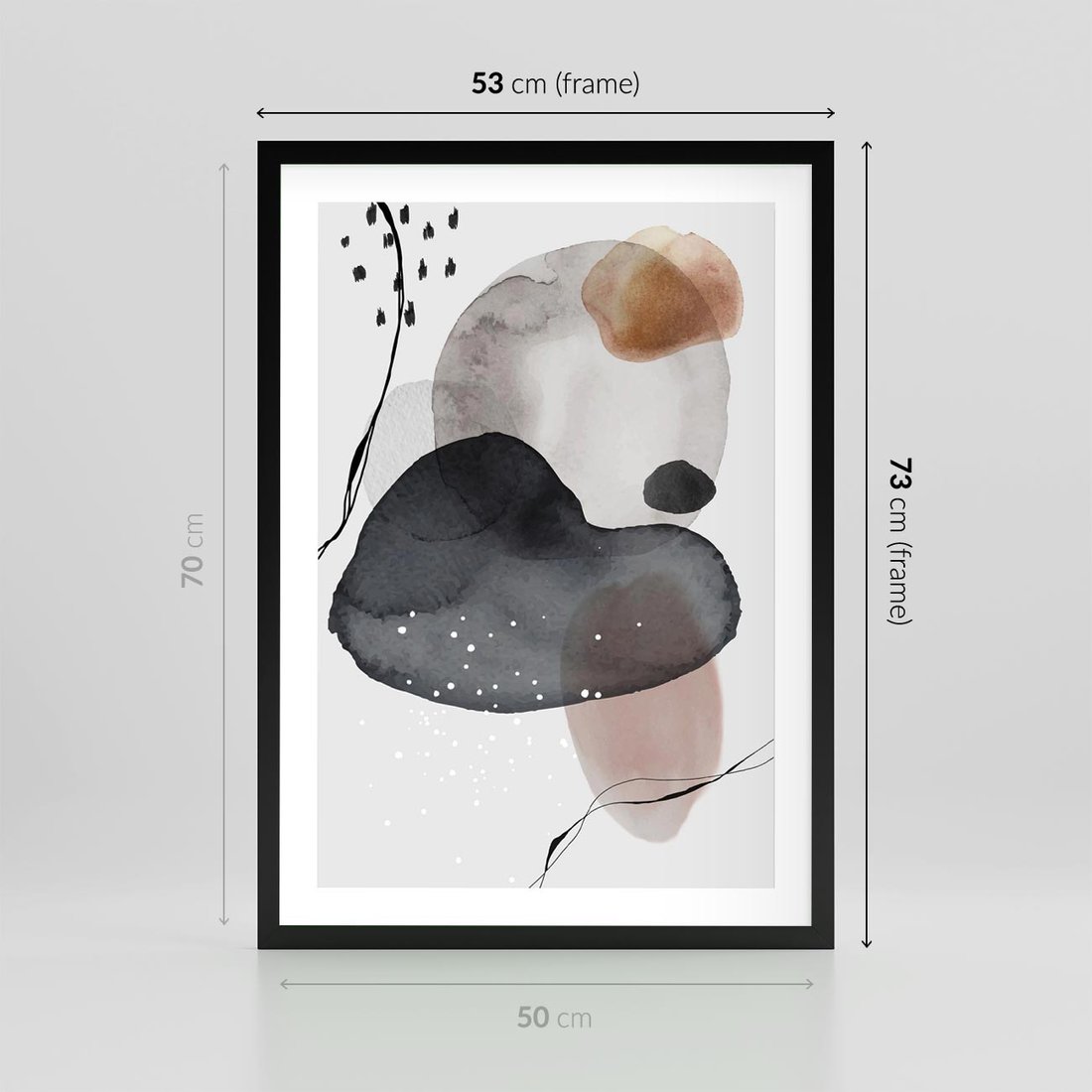 Plakat w ramie 50x70 - Impresje Harmonii - abstrakcyjne plamy akwarelowe, czarny szkic - rama czarna