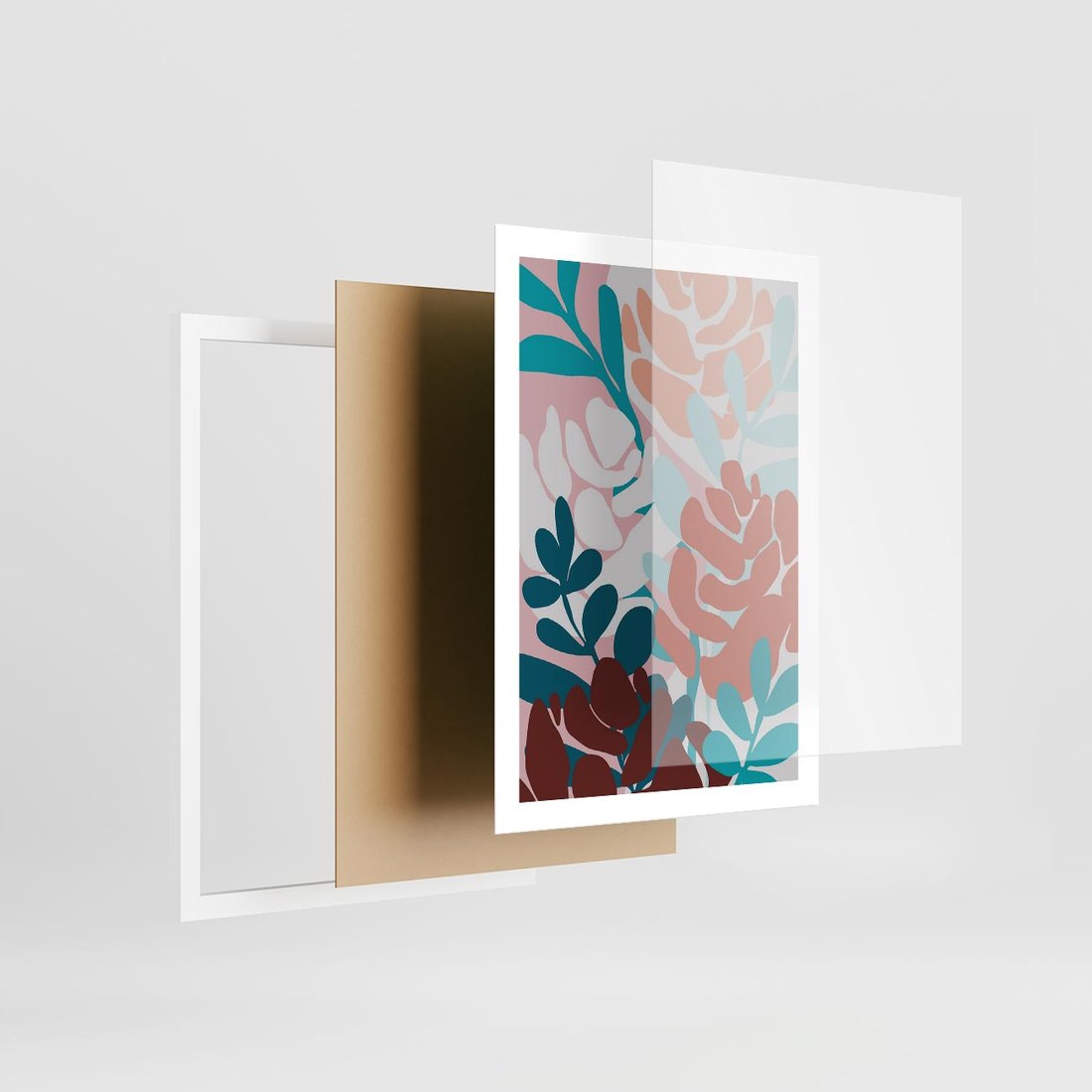 Abstrakcyjna kompozycja kwiatowych form ukazuje delikatne piękno natury w nowoczesny sposób. Zgaszone kolory dodają subtelności i tajemniczości, tworząc harmonijną i elegancką sztukę, która zachwyca swoją unikalną interpretacją.