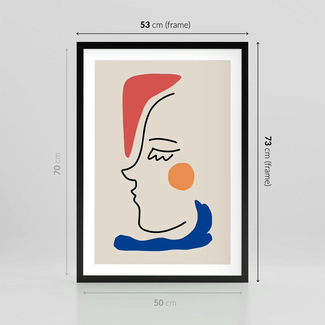 Plakat w ramie 50x70 - Impresje Kształtów - abstrakcyjny obraz, przypomina twarz - rama czarna