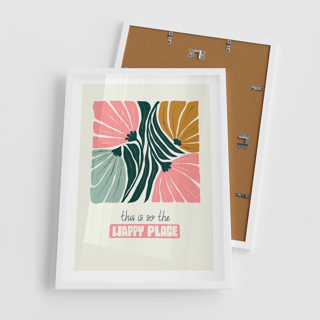 Ta retro grafika w pastelowych odcieniach to kompozycja harmonijnie łącząca estetykę przeszłości z pozytywnym myśleniem. Obraz przywołuje nostalgiczny urok kwiatów i dodaje radości motywacyjnym napisem. Ten obraz wniesie do wnętrza dawkę pozytywnej energii i estetyki retro, inspirując do optymistycznego spojrzenia na świat.