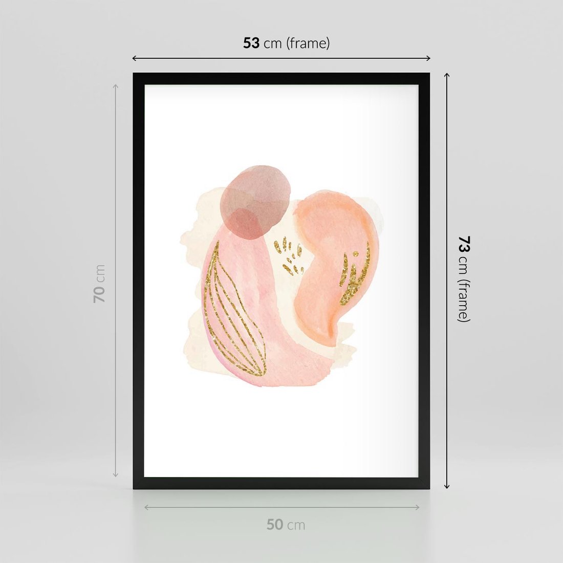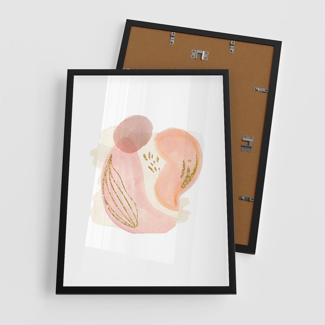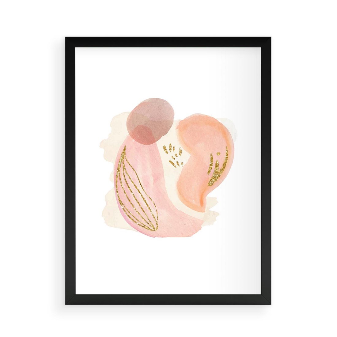 Abstrakcyjne akwarelowe plamy w minimalistycznym stylu. Subtelne pastele złagodzone złotymi elementami tworzą spokojną i wyrafinowaną kompozycję.