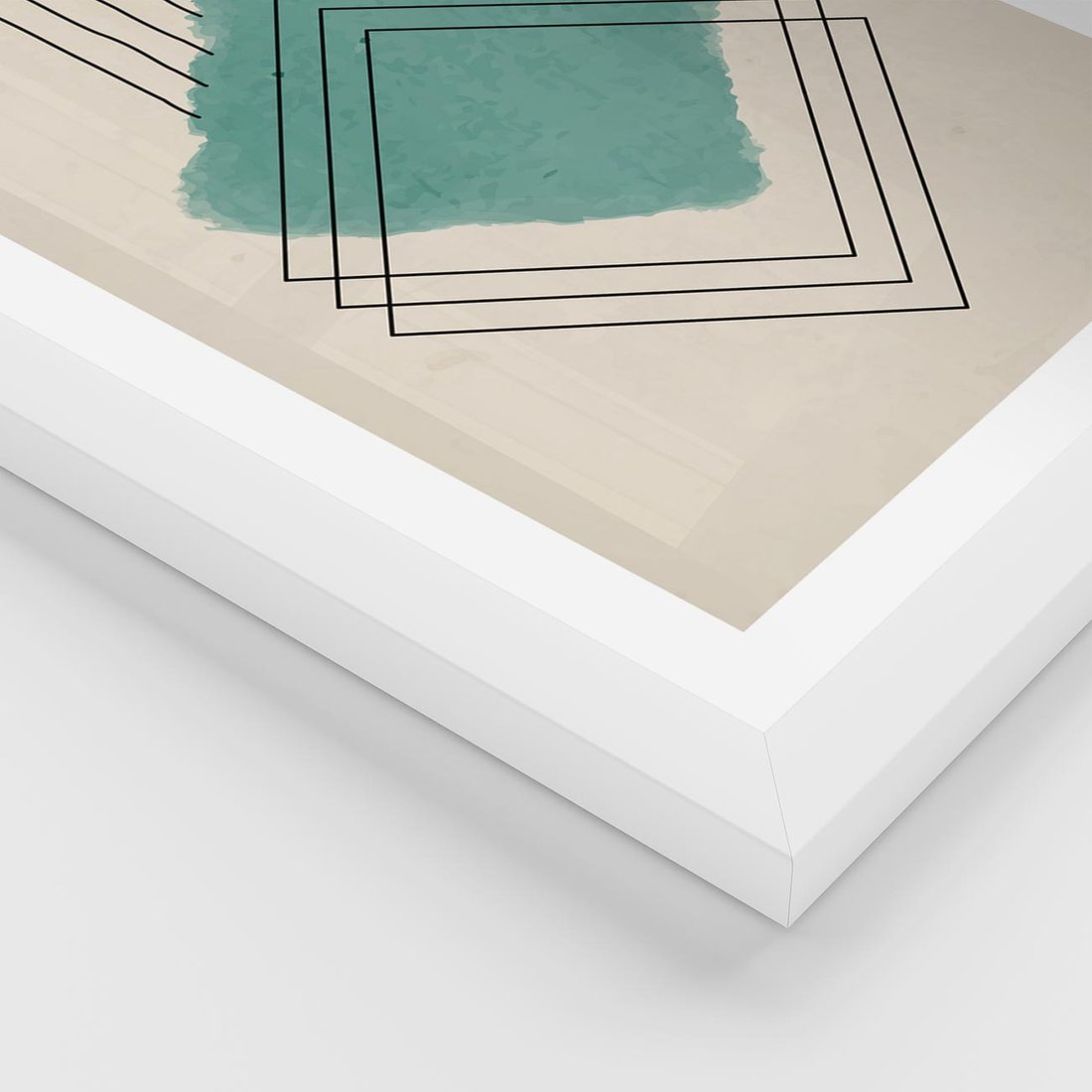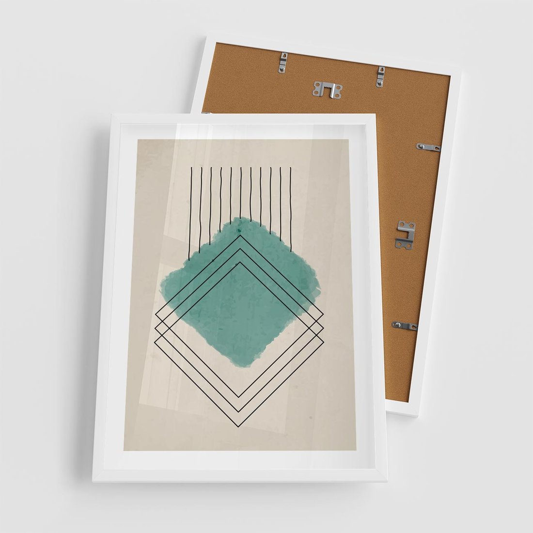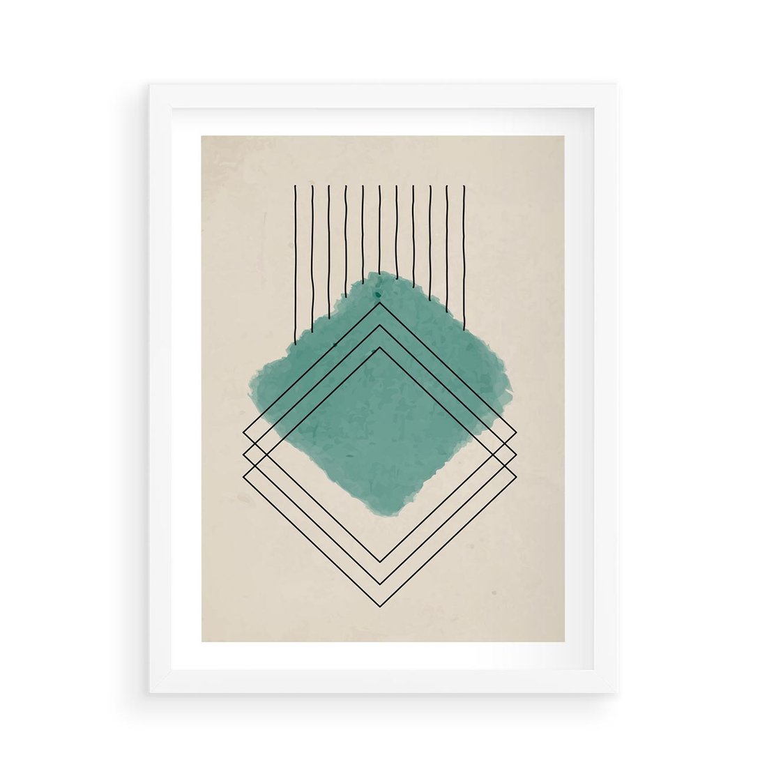 Zrównoważ akwarelową plamę z geometrycznymi, szkicowanymi kształtami, tworząc harmonijną regularność i prostotę w swoim wnętrzu. Odkryj unikalny urok tej kompozycji.