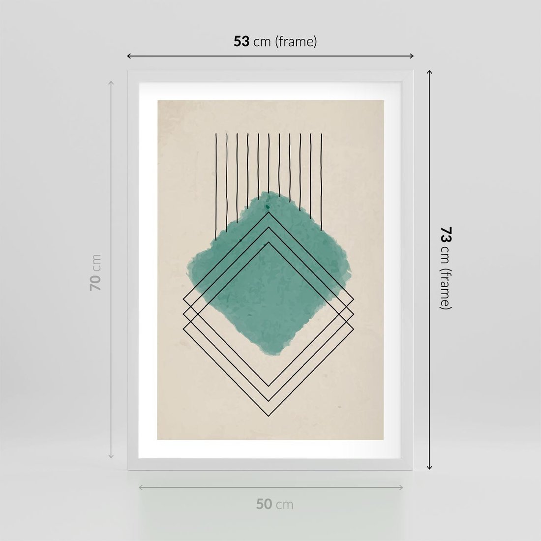 Plakat w ramie 50x70 - Impresje Przestrzeni - akwarelowa plama, geometryczne szkicowane kształty - rama biała