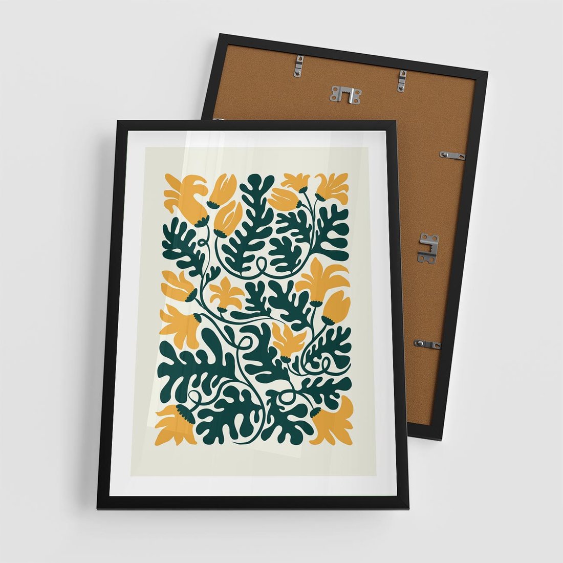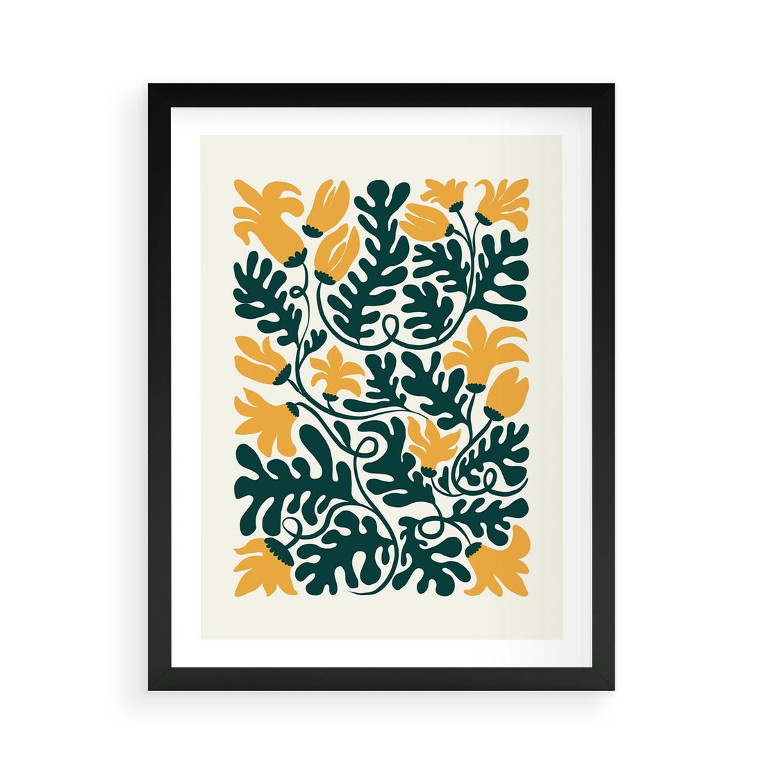 Plakat w ramie 50x70 - Impulsy Kreatywności - abstrakcyjne żółte kwiaty, kompozycja - rama czarna