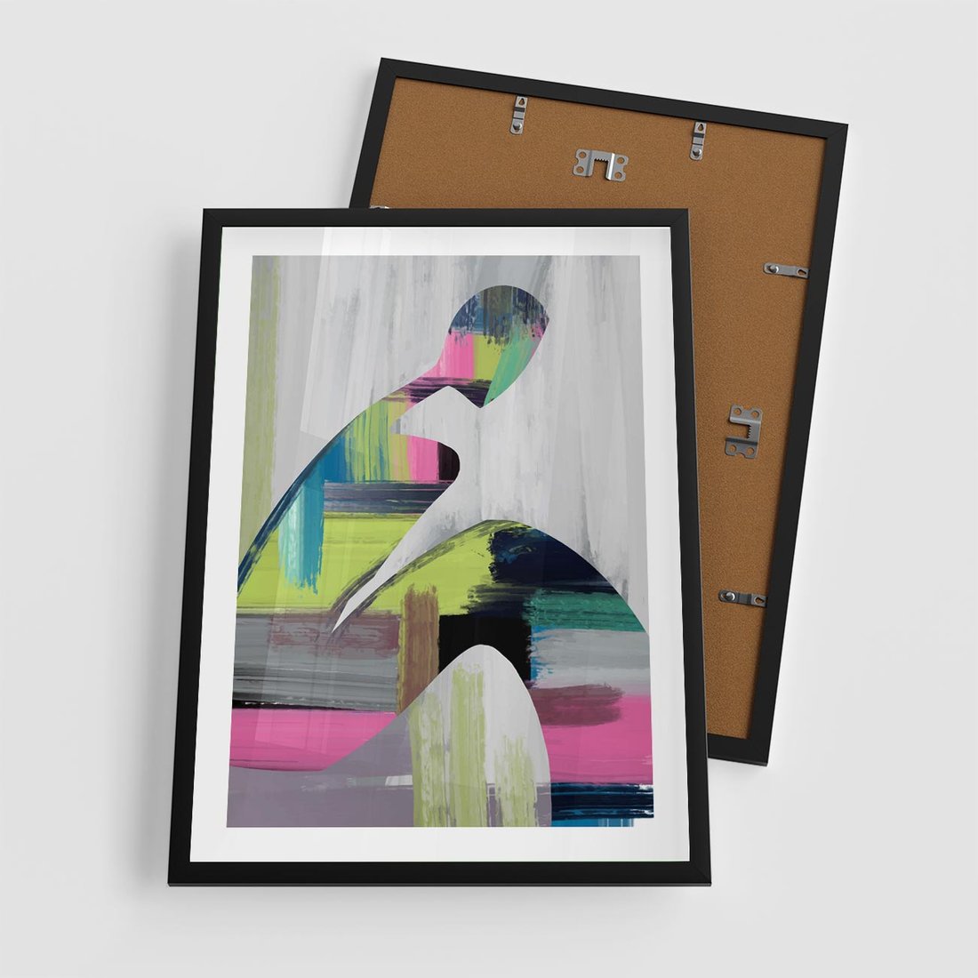 Abstrakcyjna sztuka ożywa na nowoczesnym obrazie, gdzie kolorowe postaci wkomponowane w przestrzeń loftu tworzą dynamiczną kompozycję.