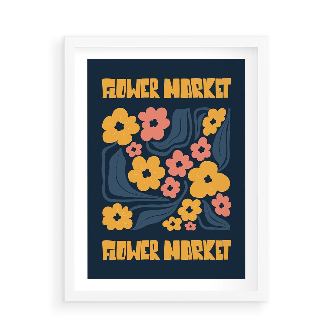 Ten plakat emanuje elegancją dzięki granatowemu tłu, na którym kontrastują wyraziste żółte kwiaty. Dominująca typografia dodaje charakteru, tworząc kompozycję pełną siły i piękna.