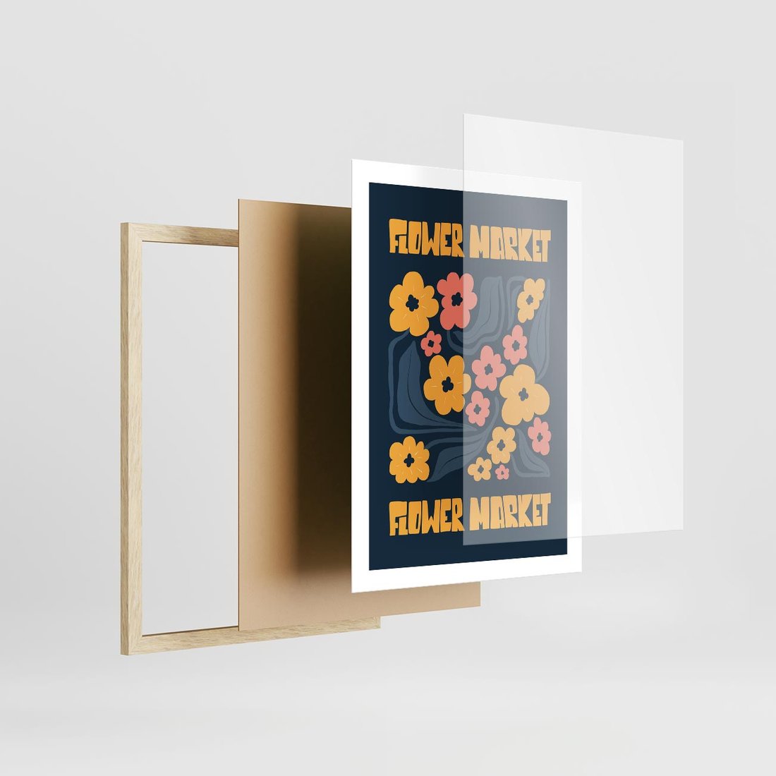 Ten plakat emanuje elegancją dzięki granatowemu tłu, na którym kontrastują wyraziste żółte kwiaty. Dominująca typografia dodaje charakteru, tworząc kompozycję pełną siły i piękna.
