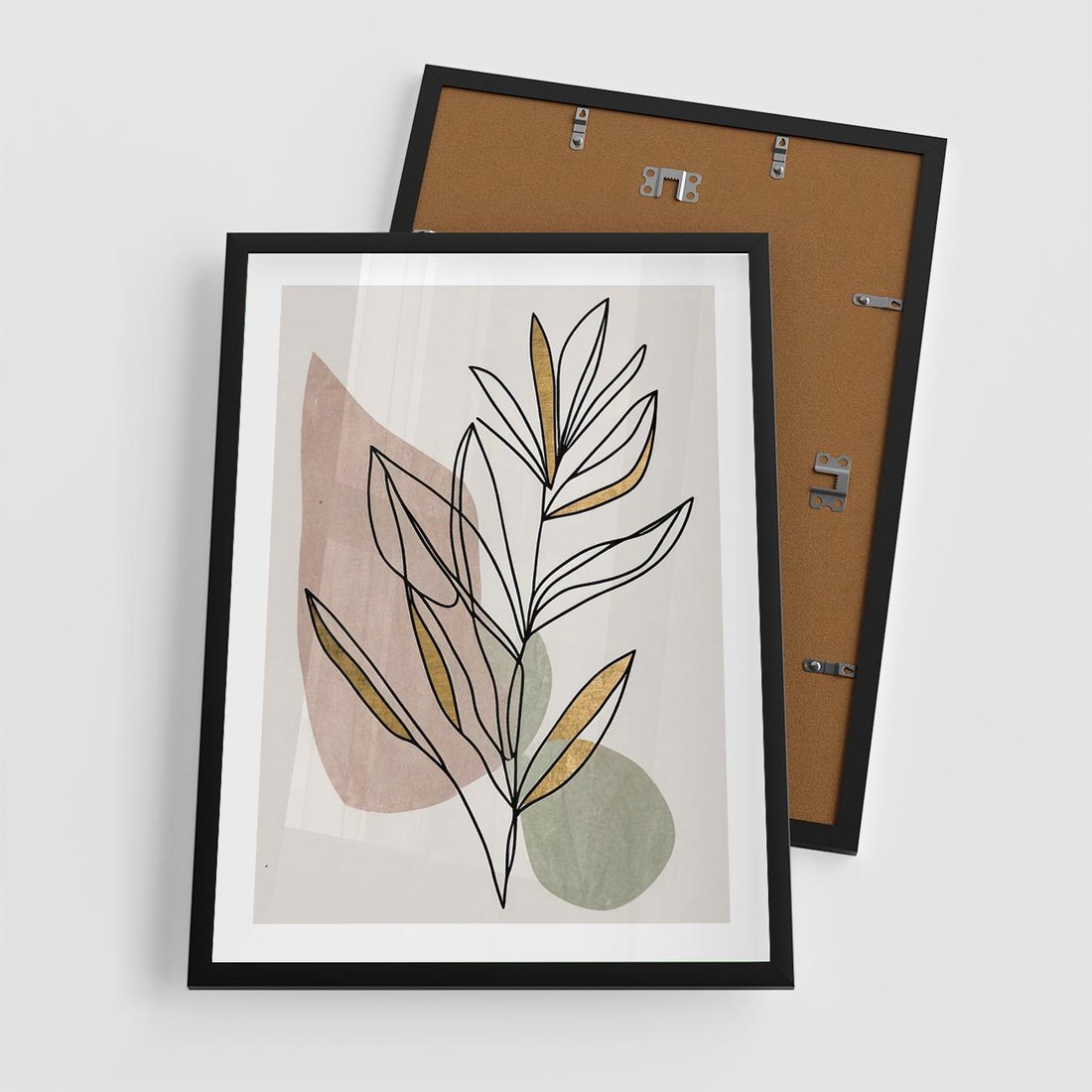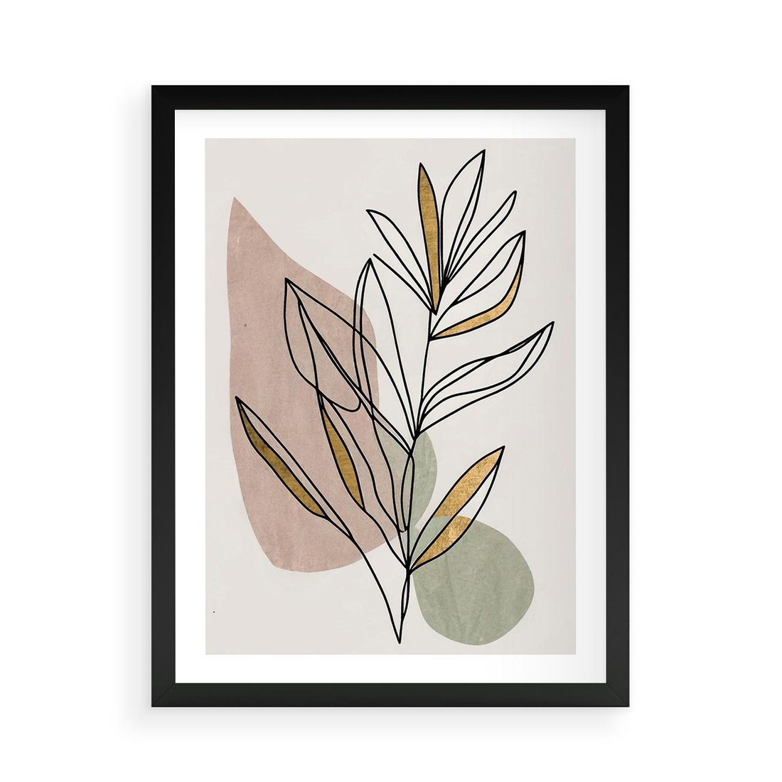 Plakat w ramie 50x70 - Impulsy Subtelnej Harmonii - abstrakcyjny obraz boho, liście - rama czarna