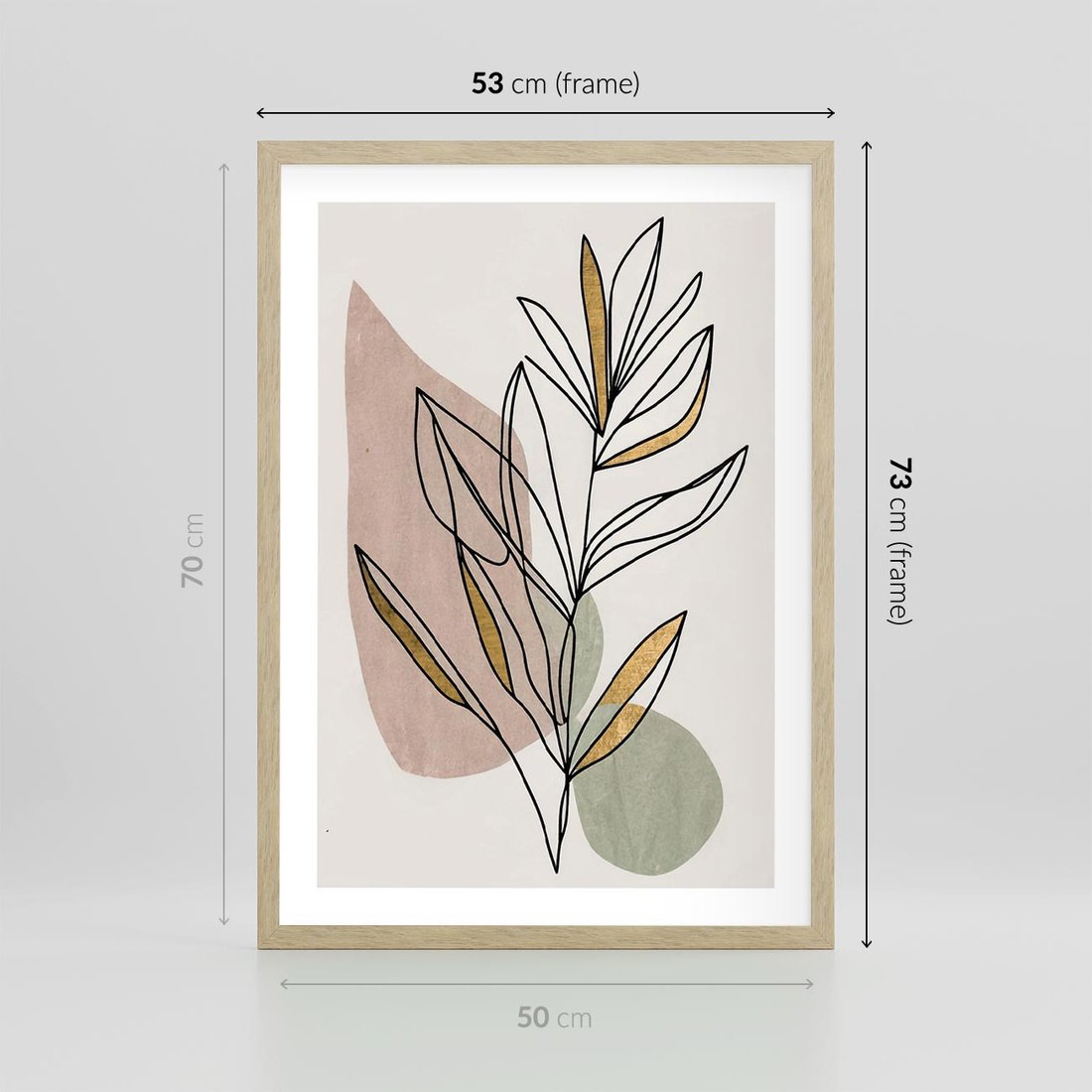 Plakat w ramie 50x70 - Impulsy Subtelnej Harmonii - abstrakcyjny obraz boho, liście - rama drewno