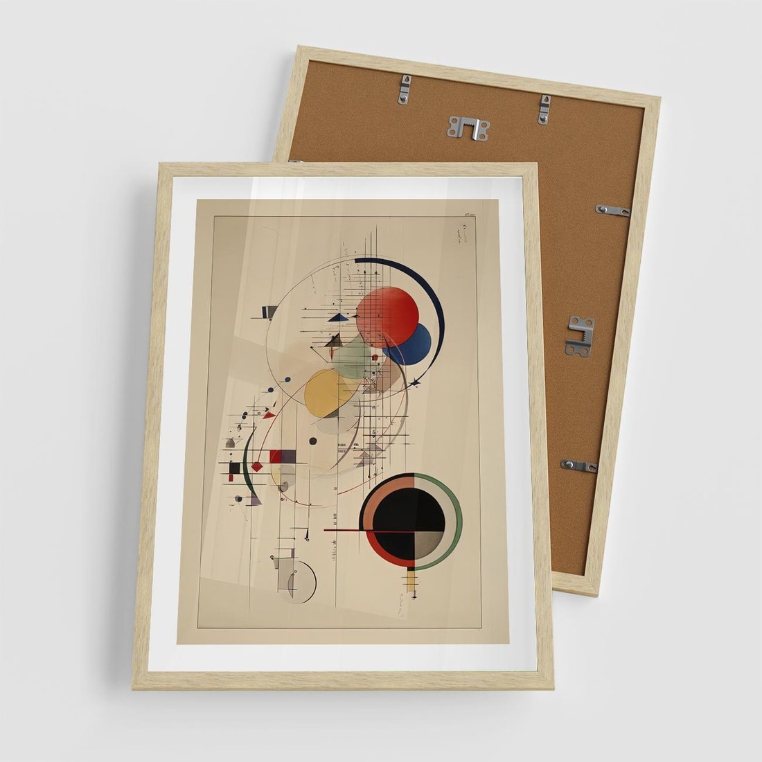 Plakat w ramie 50x70 - Impulsy Wydobyte z Cienia - abstrakcyjna geometryczna kompozycja, koła linie - rama drewno