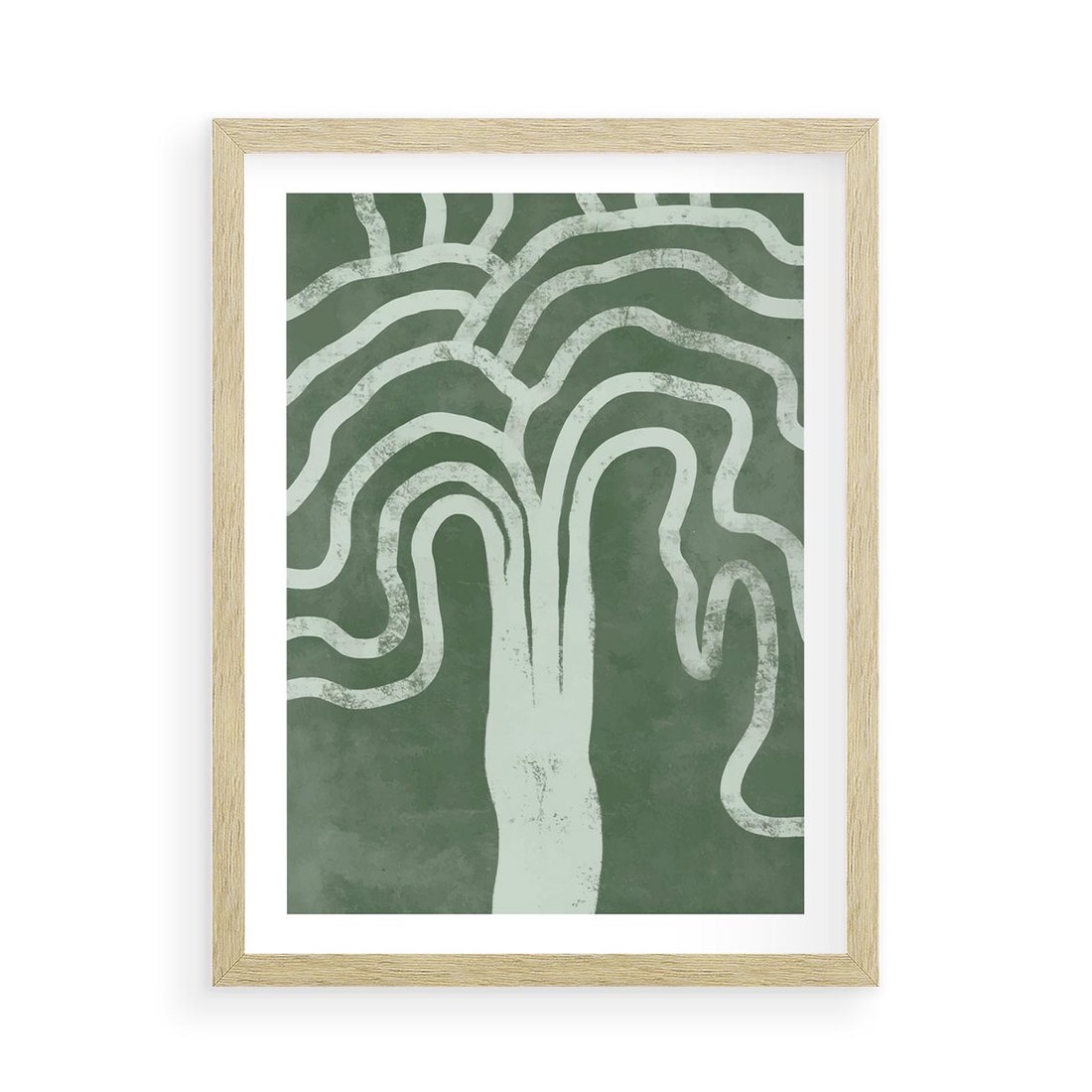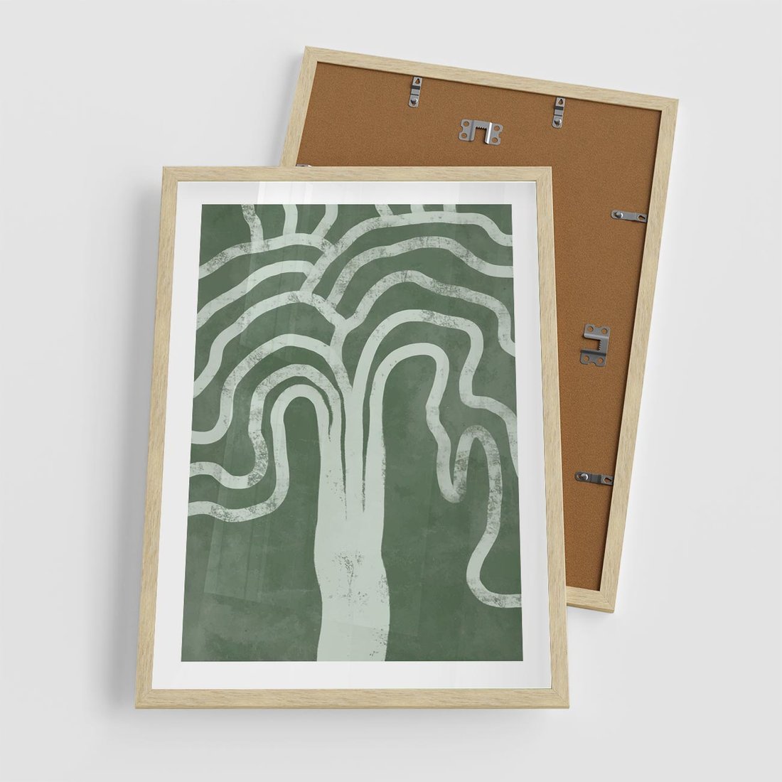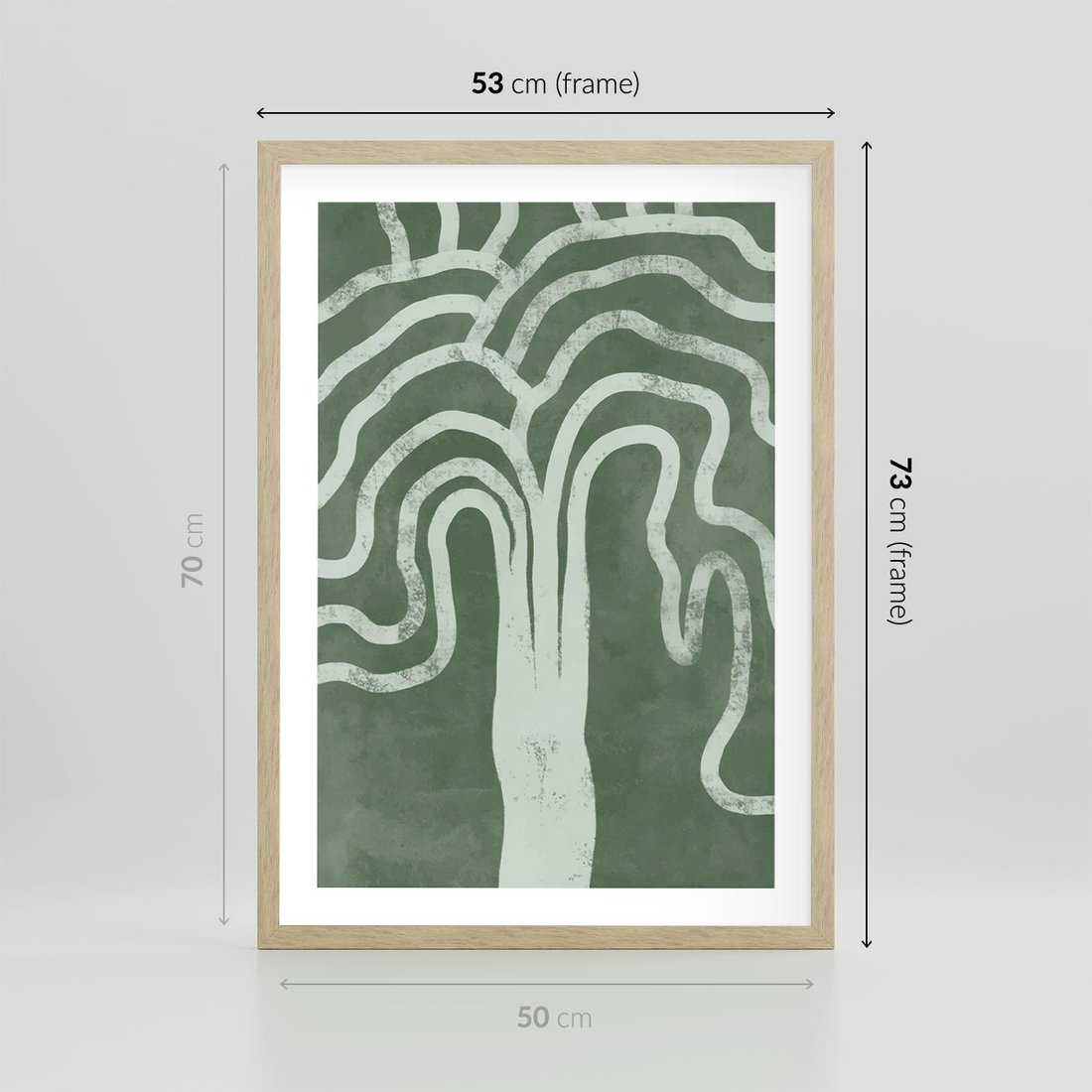 Plakat w ramie 50x70 - Inspirujące Zawiłości Zieleni - abstrakcyjny kształt, zielony plakat - rama drewno